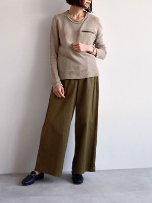 胸元にはラムレザーを施したジップポケットがアクセントとなり、上品な中にモードなエッセンスを添えています。