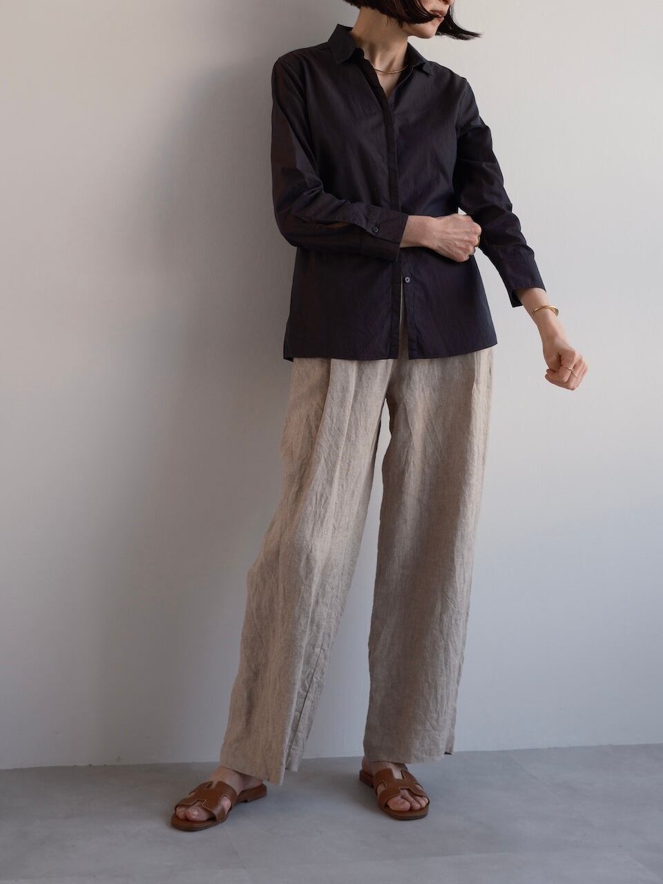 ボタンが隠れる比翼仕立てにより、ミニマルでクリーンな印象に仕上げられています。