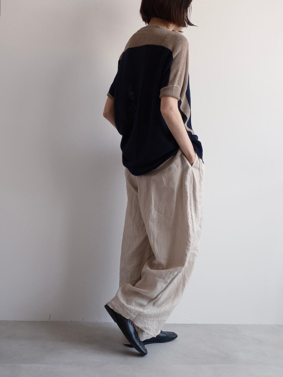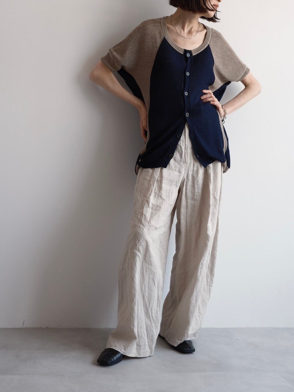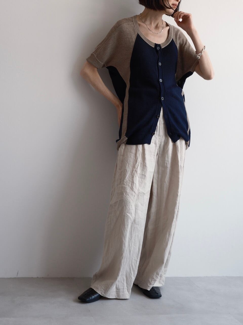 リネンやレーヨンをブレンドした軽やかなニット素材で、春夏シーズンにも心地よい着心地。