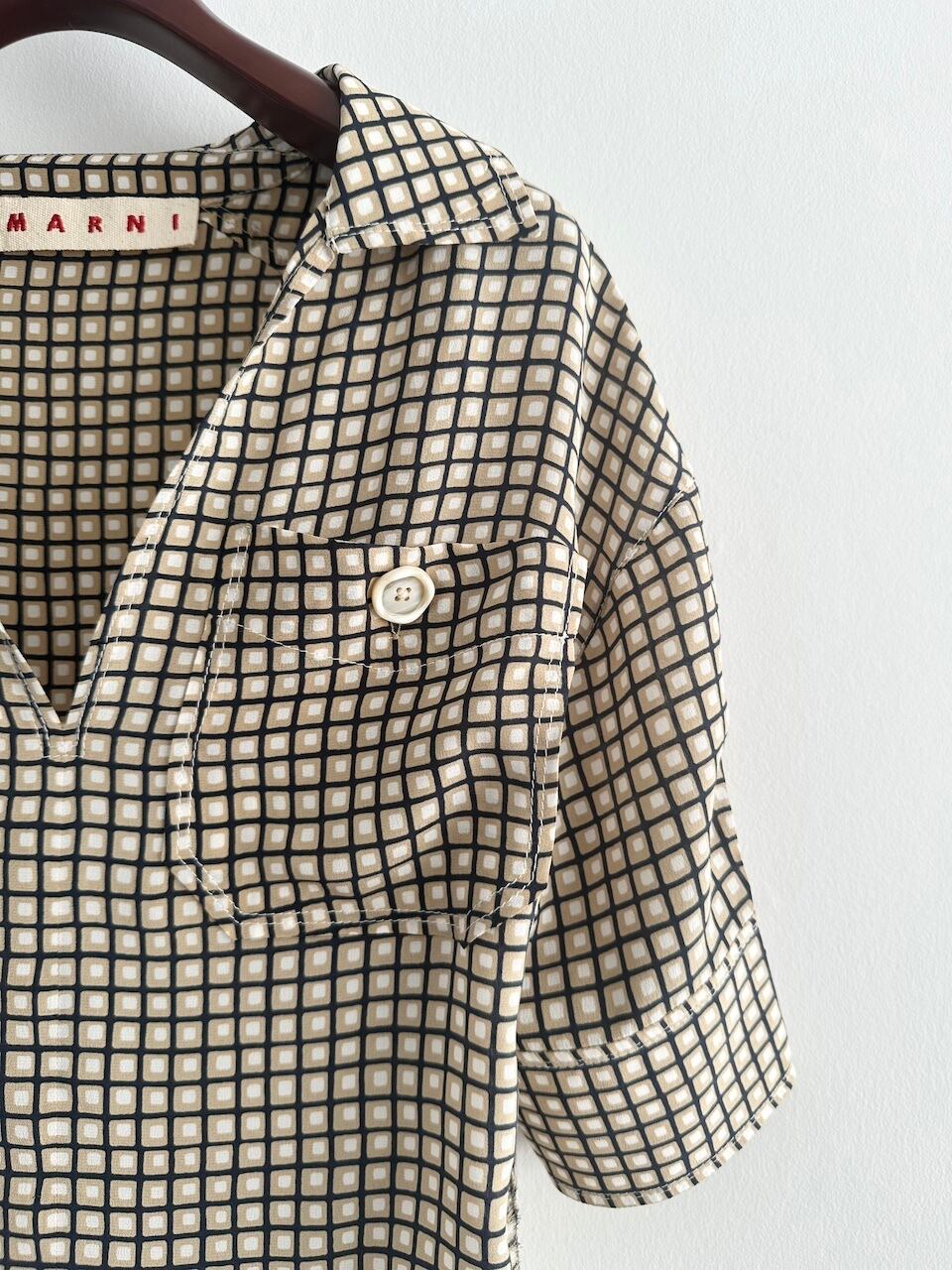 白×ベージュ×紺のチェック柄をMARNIらしい絶妙なパターンで表現。