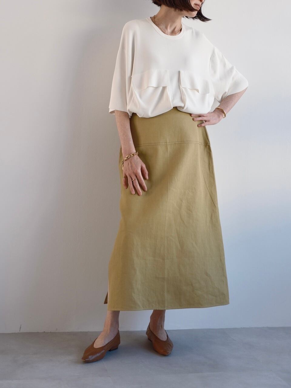 滑らかで落ち感のあるヴィスコース混素材が柔らかなドレープを生み出し、ボディラインを包み込むようなリラックスした着心地に仕上げられています。