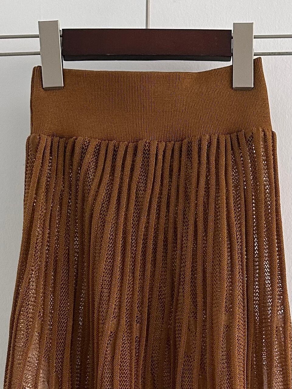 繊細な透かし模様が浮かび上がる、マメクロゴウチらしい美意識が光るプリーツスカート。