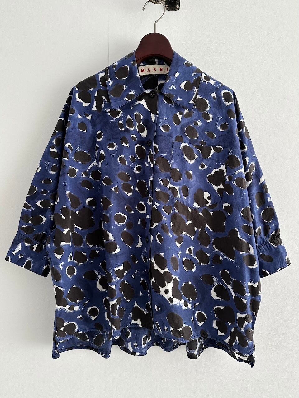 大胆な手描き風ドットが目を惹くMARNIのコットンシャツ。