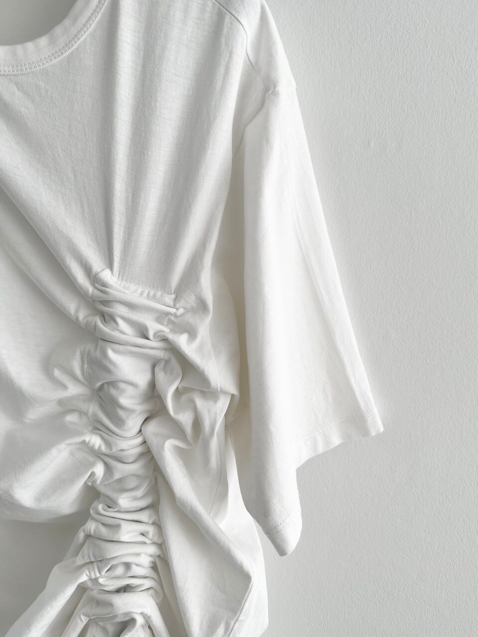 片側に寄せたギャザーデザインが印象的なDRIES VAN NOTENのコットンTシャツ。