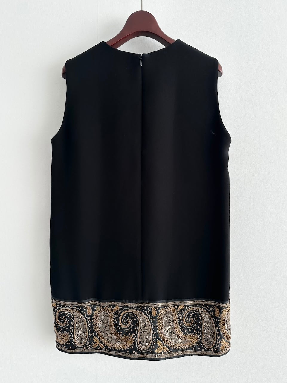 上品なブラックのボディに繊細な刺繍とスパンコールがあしらわれたY’sのノースリーブチュニック。