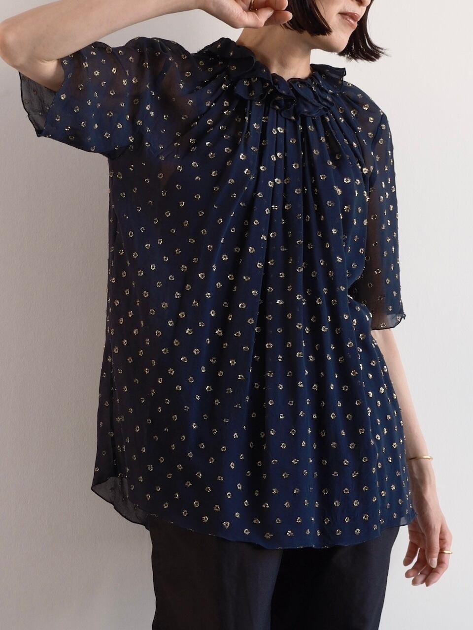 透け感のあるシルク素材にメタリックゴールドのドットをあしらったSTELLA McCARTNEYのブラウス。