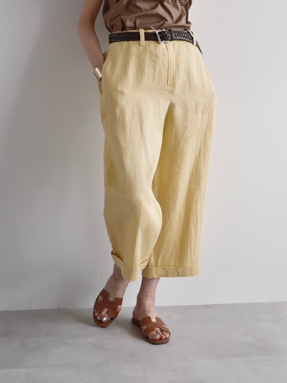 上質なリネン素材を贅沢に使用したHERMÈSのクロップドパンツ。