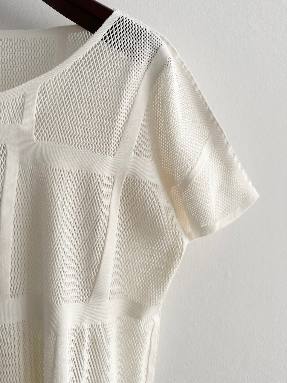 PLEATS PLEASE ISSEY MIYAKEのA-POC INSIDEラインの立体的なパネル状のデザインが目を引くメッシュトップ。