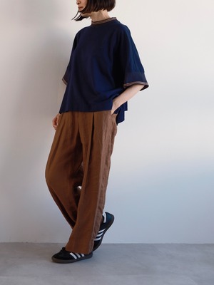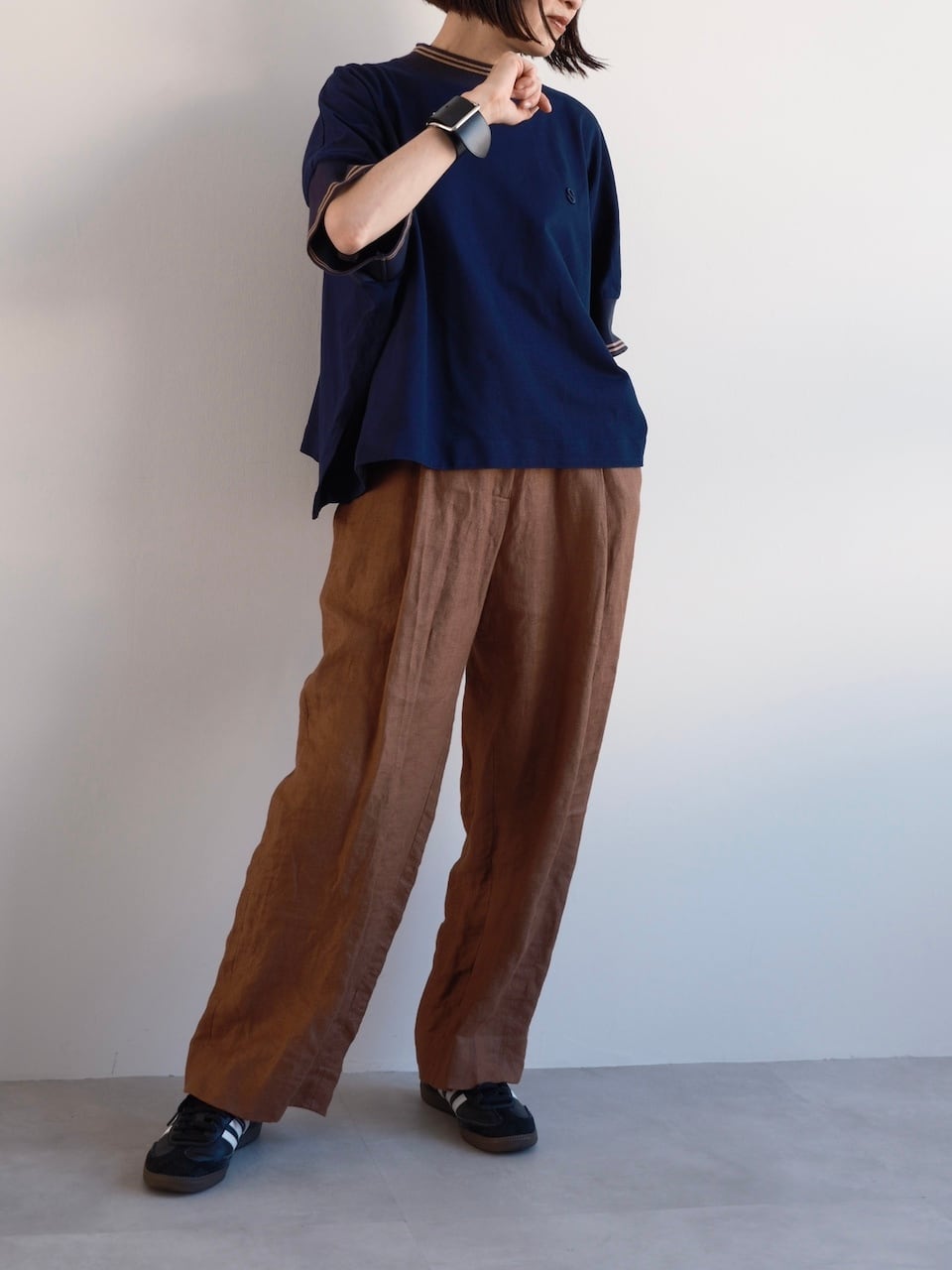 肩を落としたボクシーワイドシルエットに両サイドのスリットが軽やかな印象を演出。