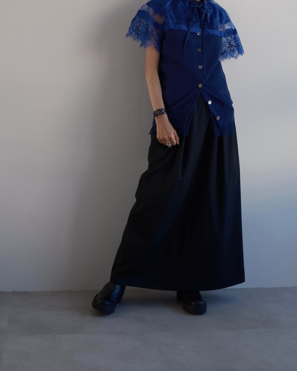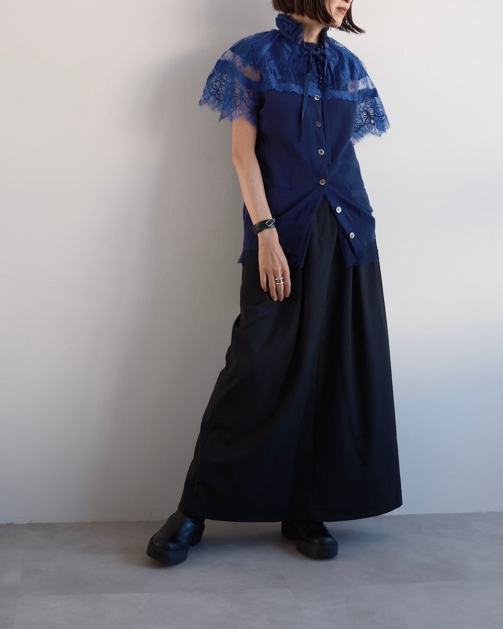 裾にはチュールを重ね、軽やかな透け感を添えることで全体に奥行きを与えています。