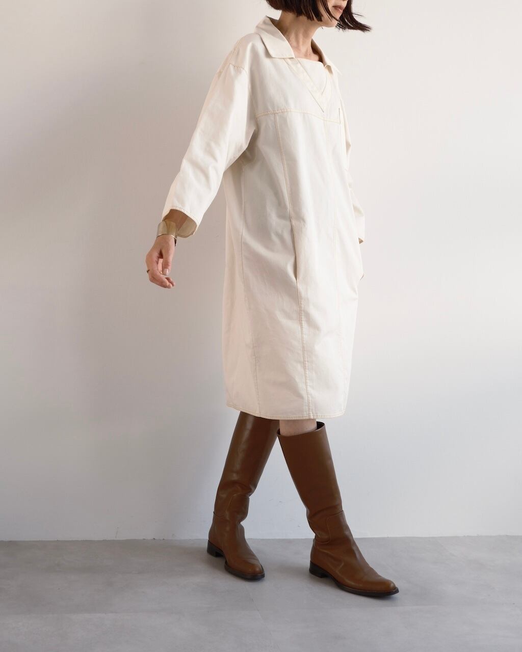 しっかりとしたコットンリネン素材を使用し、ナチュラルな風合いと構築的なフォルムが際立つ一着です。