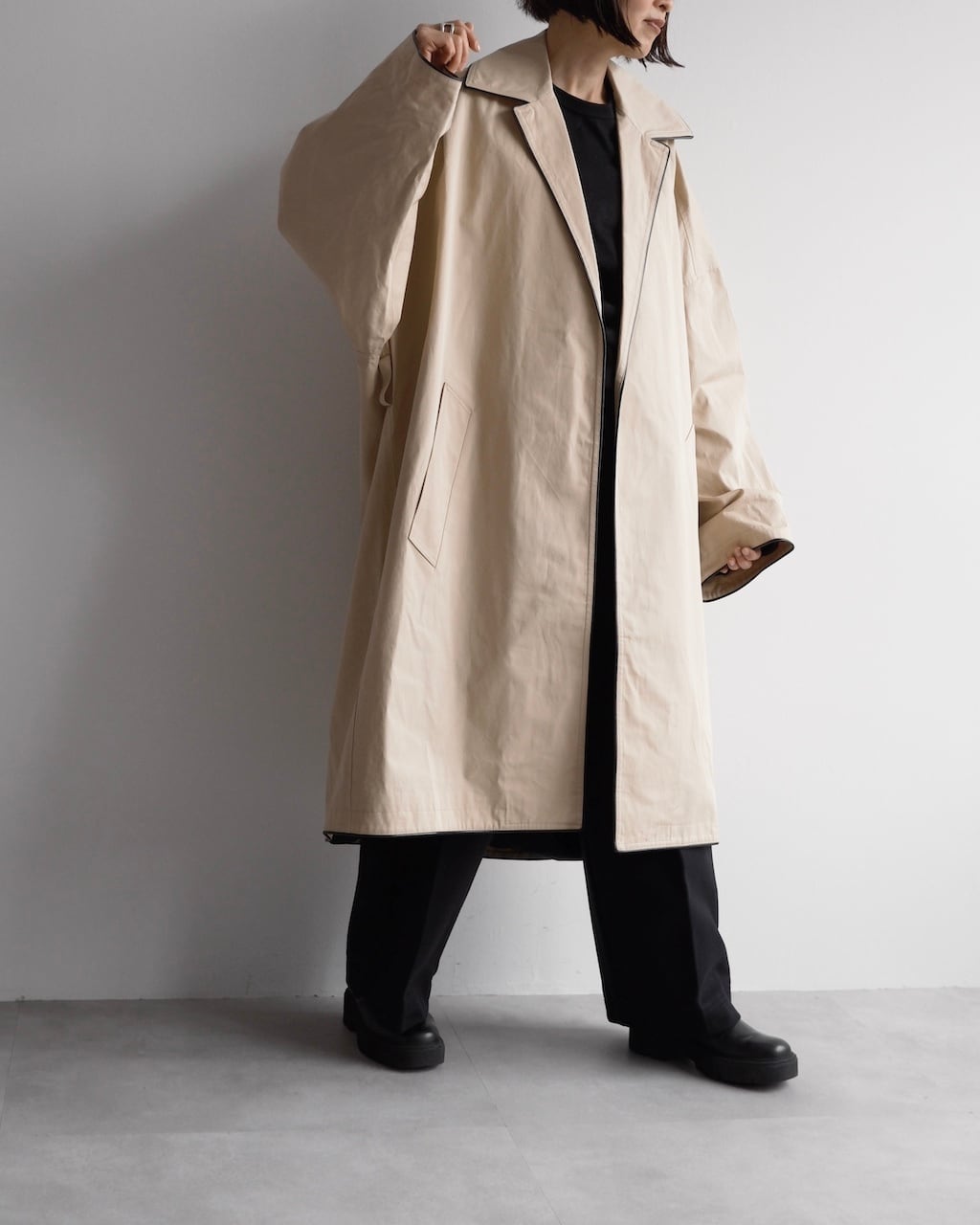 バレンシアガらしいボリューム感と抜けのあるシルエットを際立たせています。