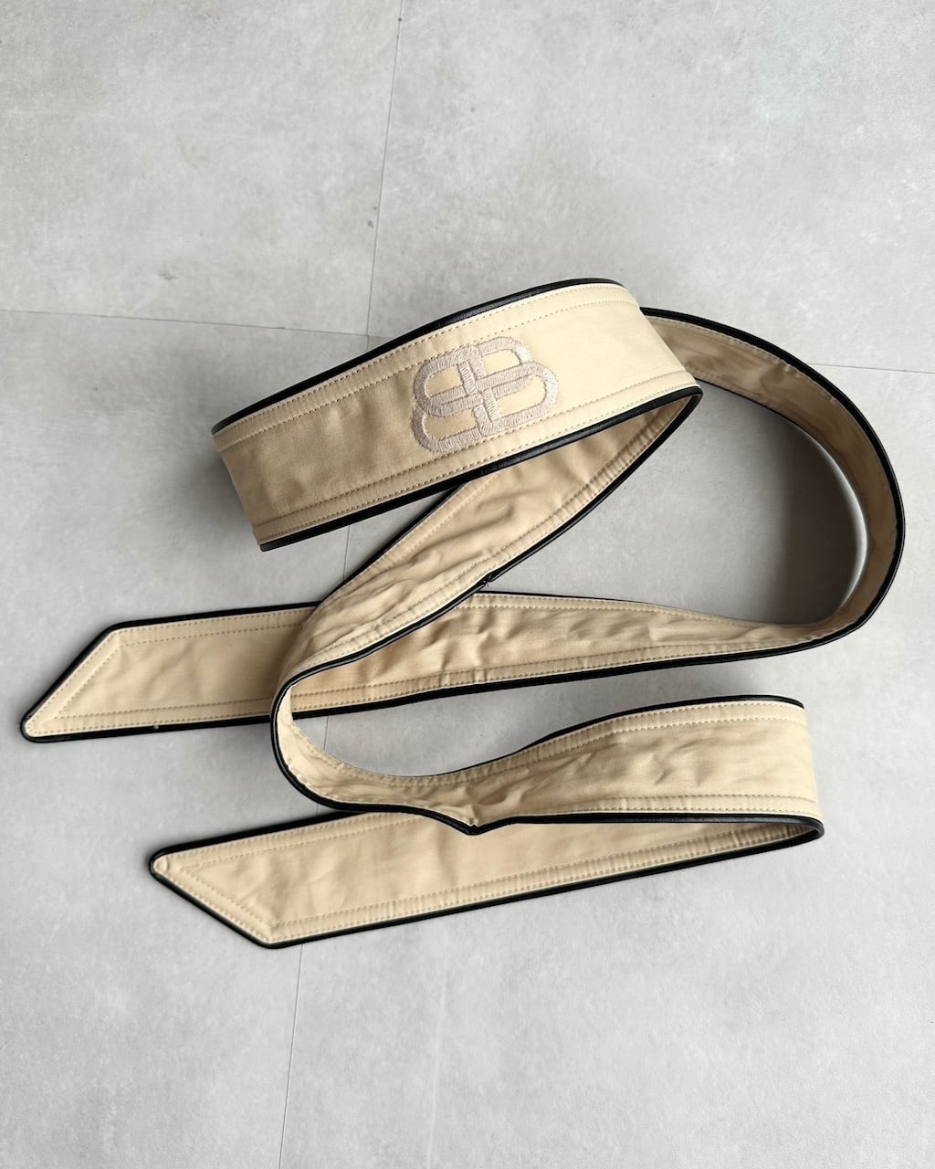 付属の共布ベルトには、同色の“BB”ロゴ刺繍入り。