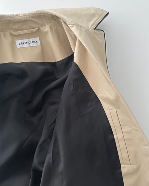 BALENCIAGAのボタンを排したミニマルなデザインのオーバーサイズコート。