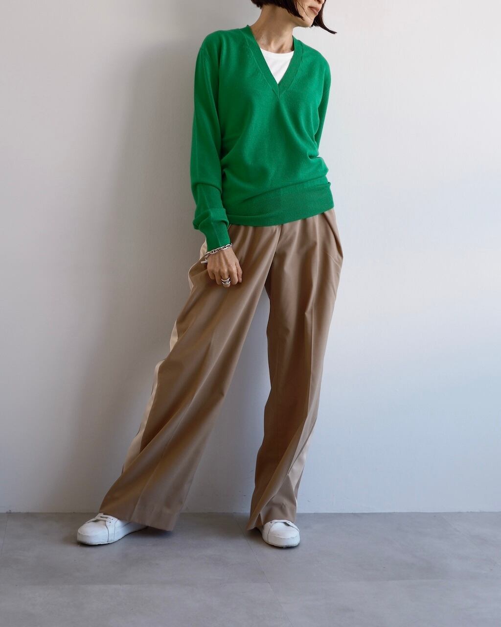ほどよい厚みと落ち感のあるポリエステルウール素材で、長いシーズン活躍する一本です。
