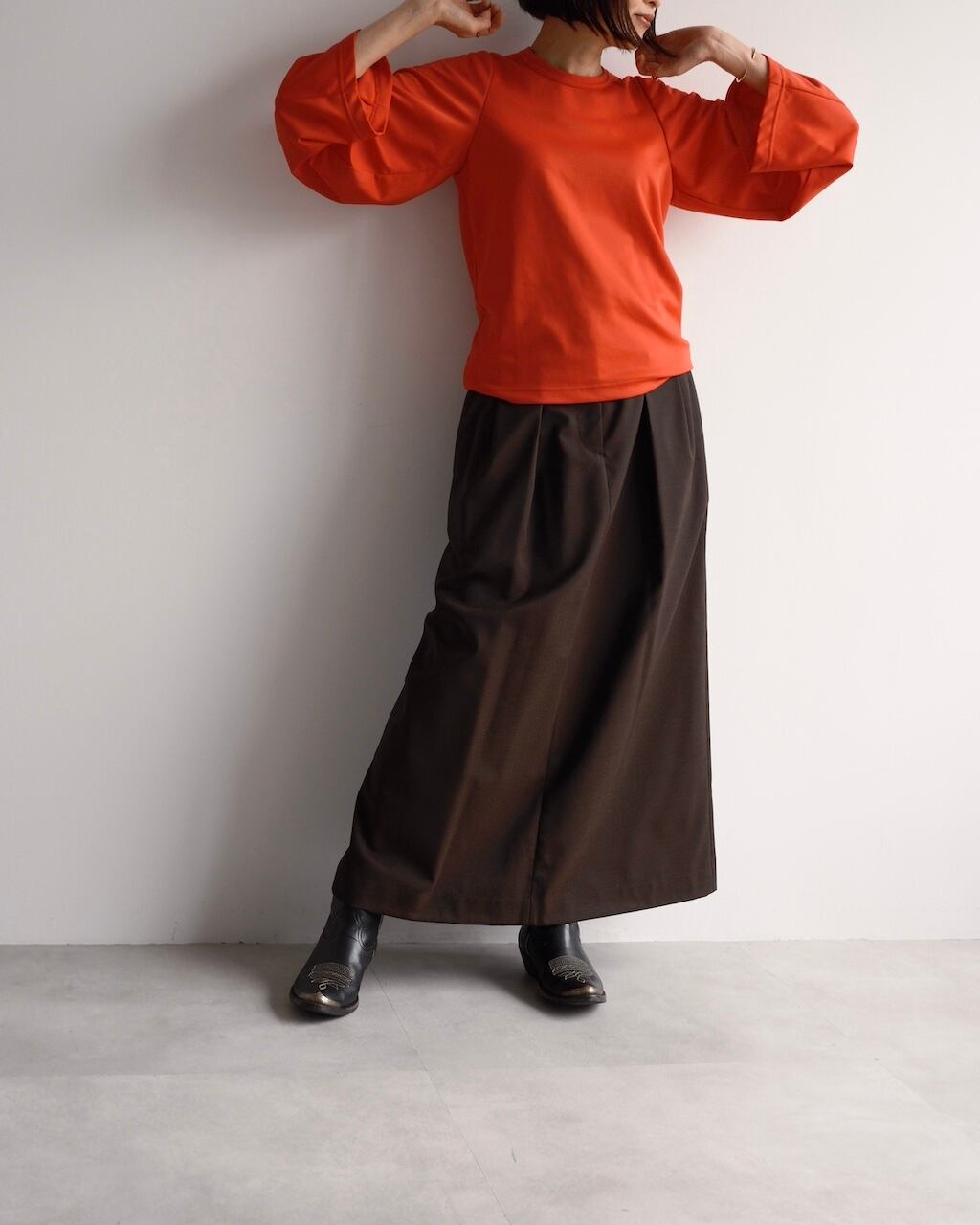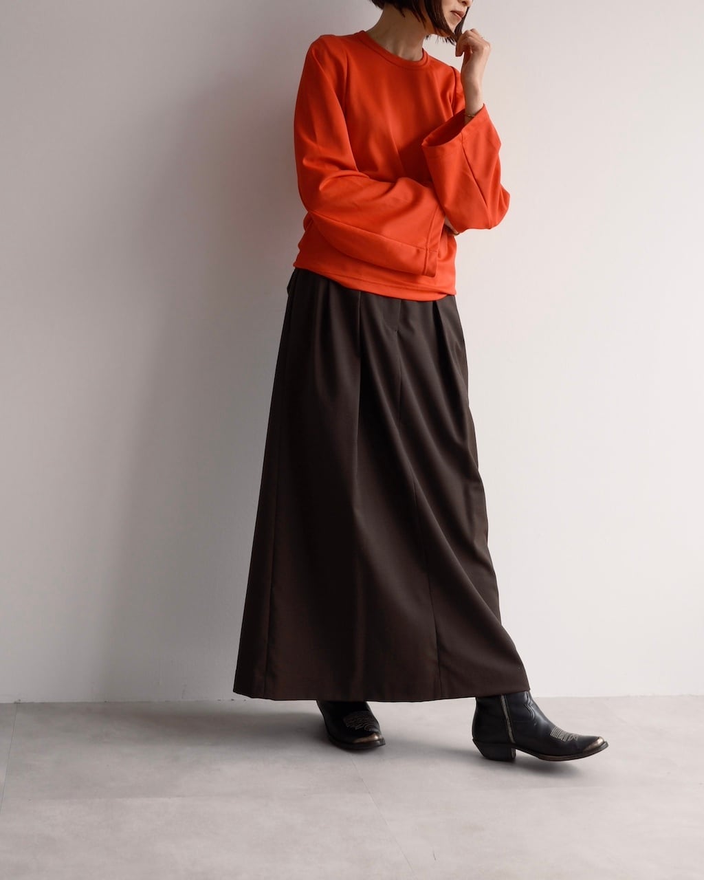 シンプルなクルーネックに、幅広のビッグスリーブライン。