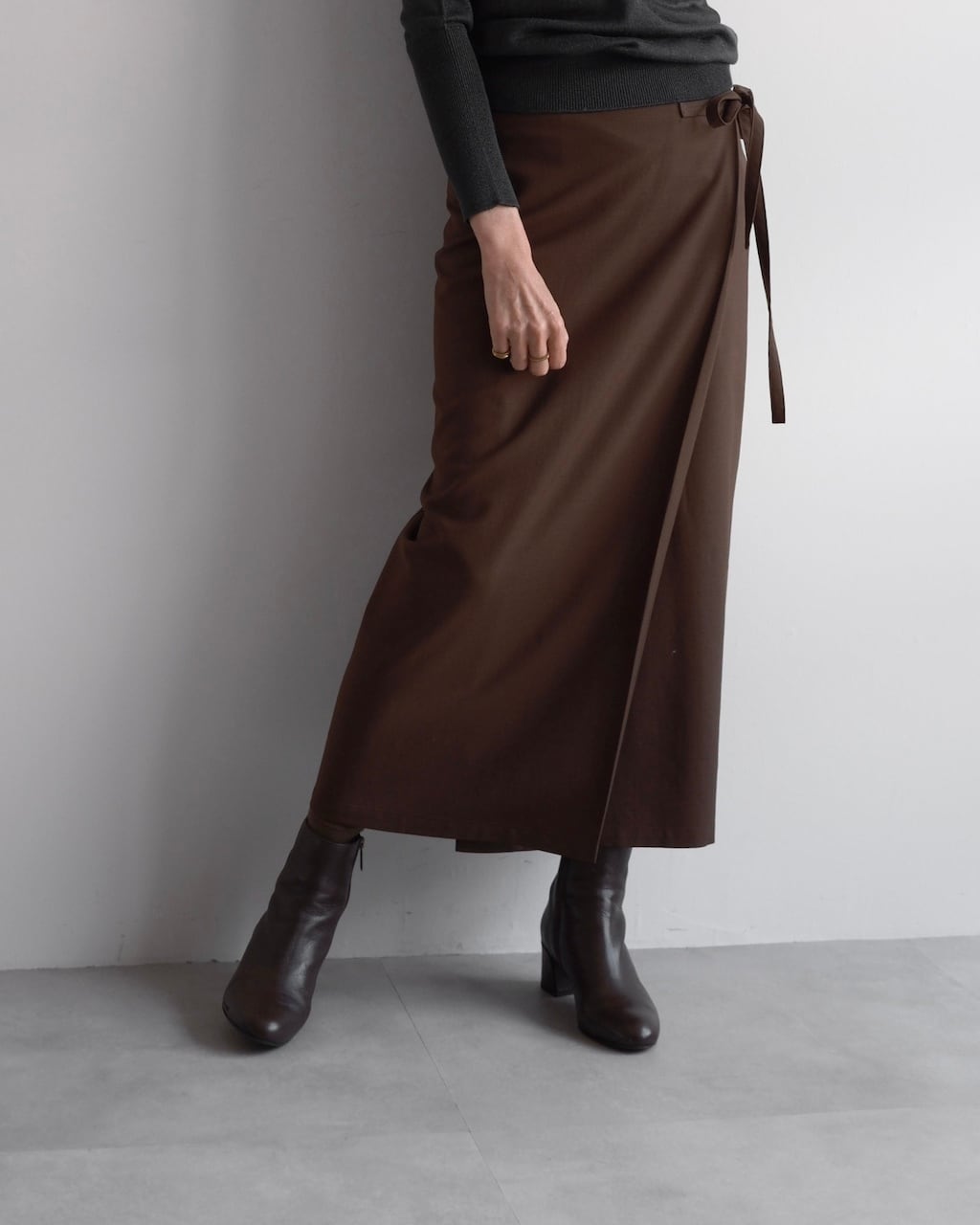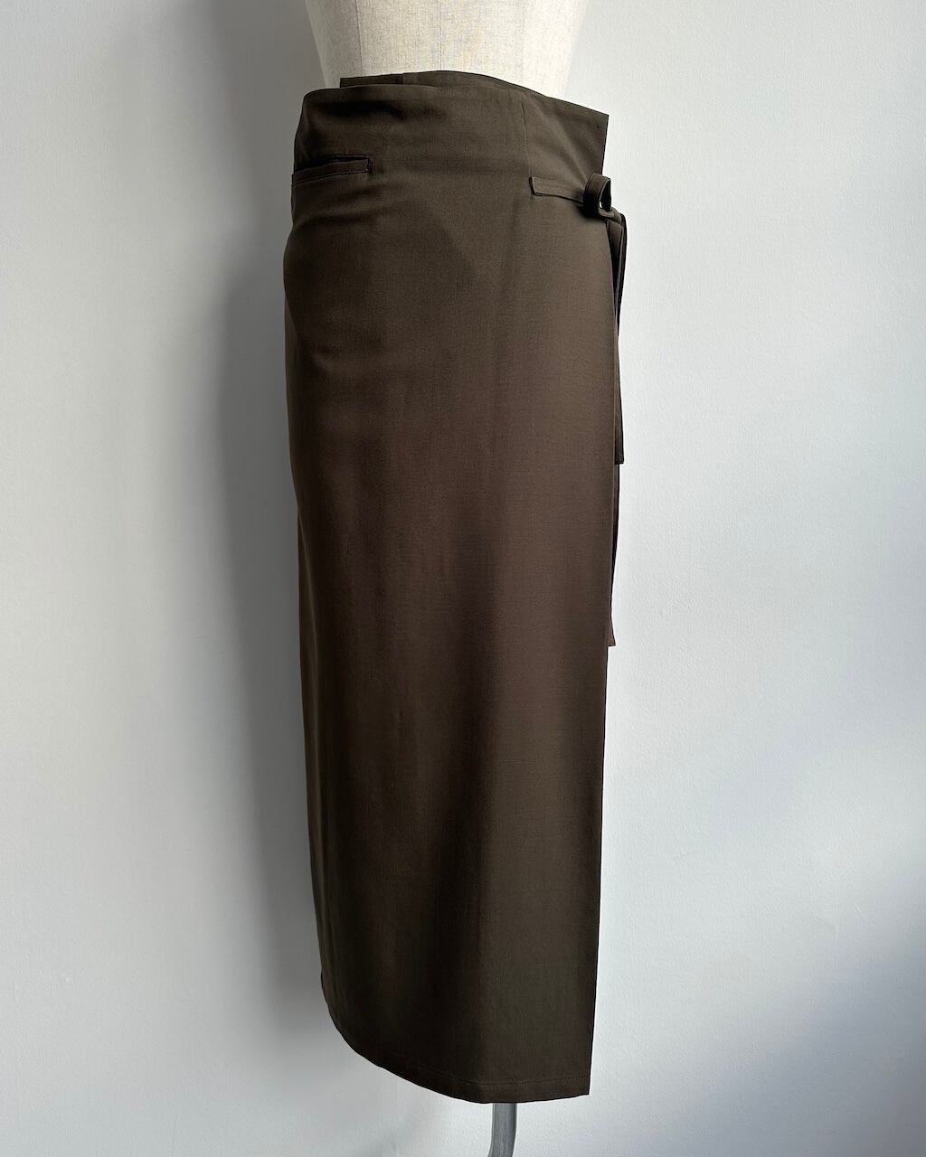 しなやかなウール素材で仕立てられた、Y’sのラップスカート。