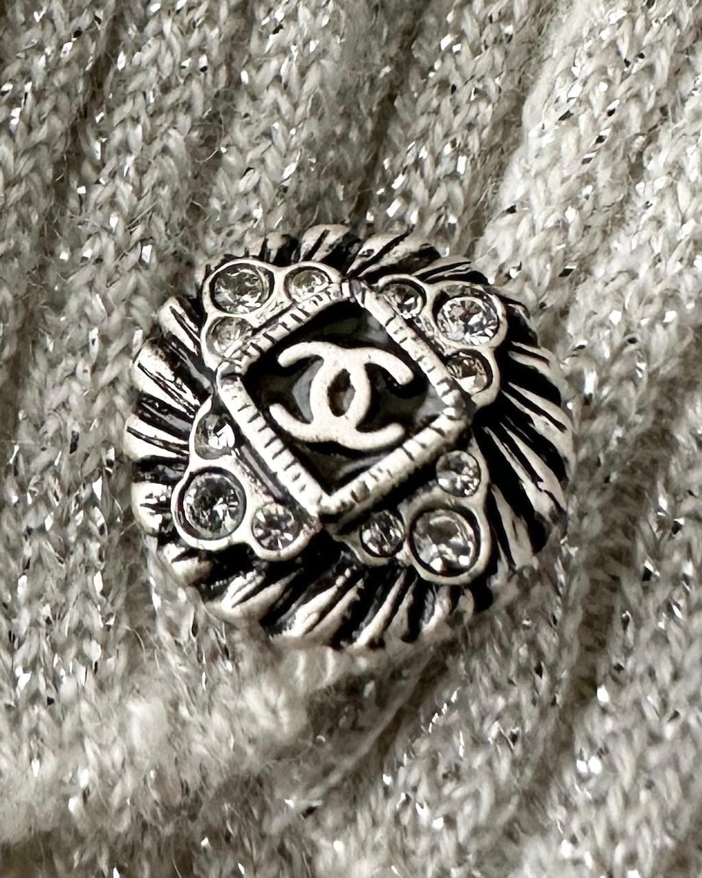 繊細なラメ糸を織り交ぜたシャネルのカシミヤベースのニット。