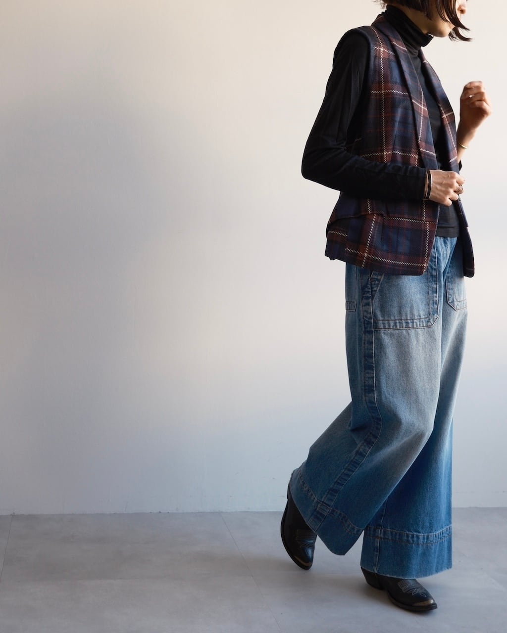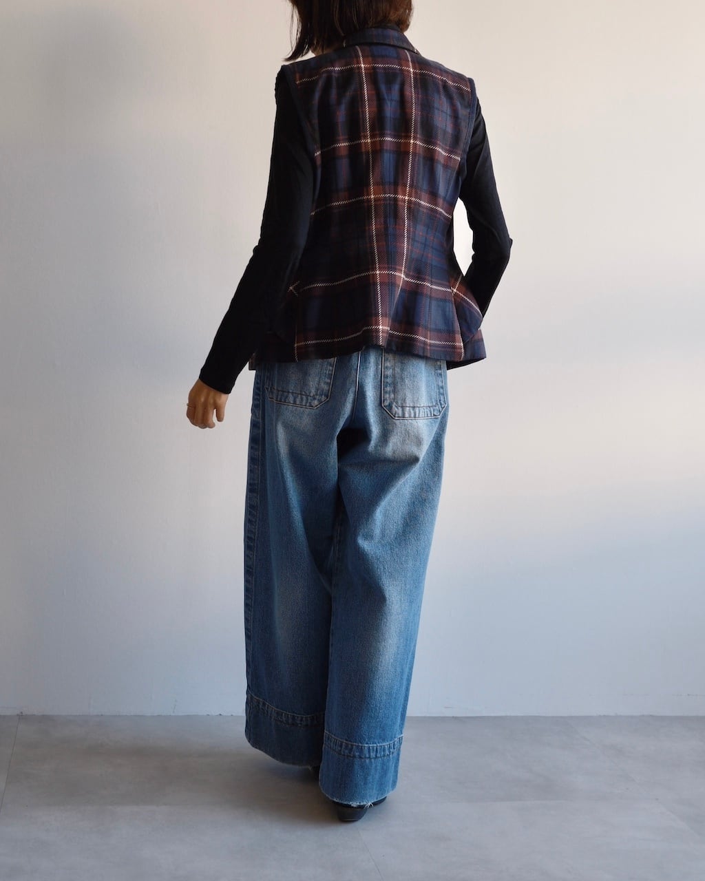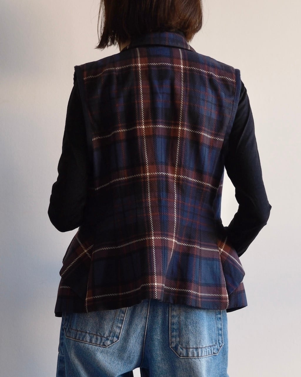 同シーズンを象徴する チェックパターン × 立体的レイヤー構築 が際立つデザインのベストです。