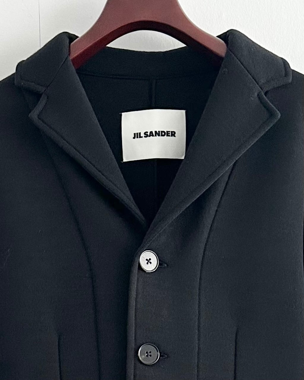 厚みのあるジャージー生地を用いた、ミニマルで端正な印象の JIL SANDER のテーラードジャケット。