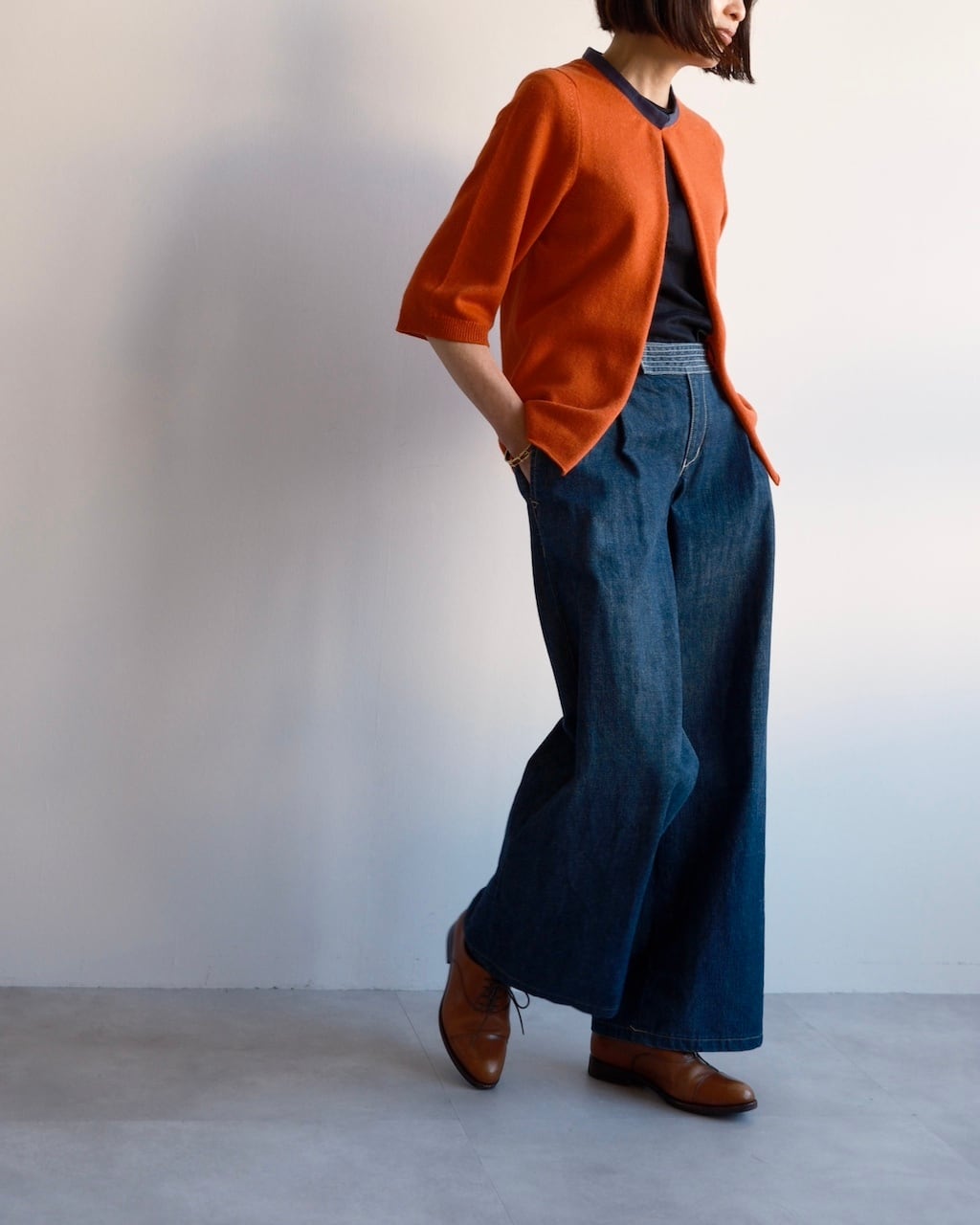 五分袖のバランスも軽やかで、季節を問わずスタイリングに取り入れやすいデザイン。