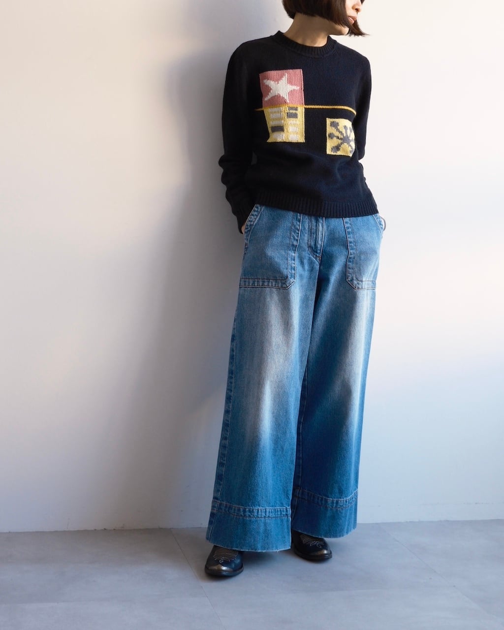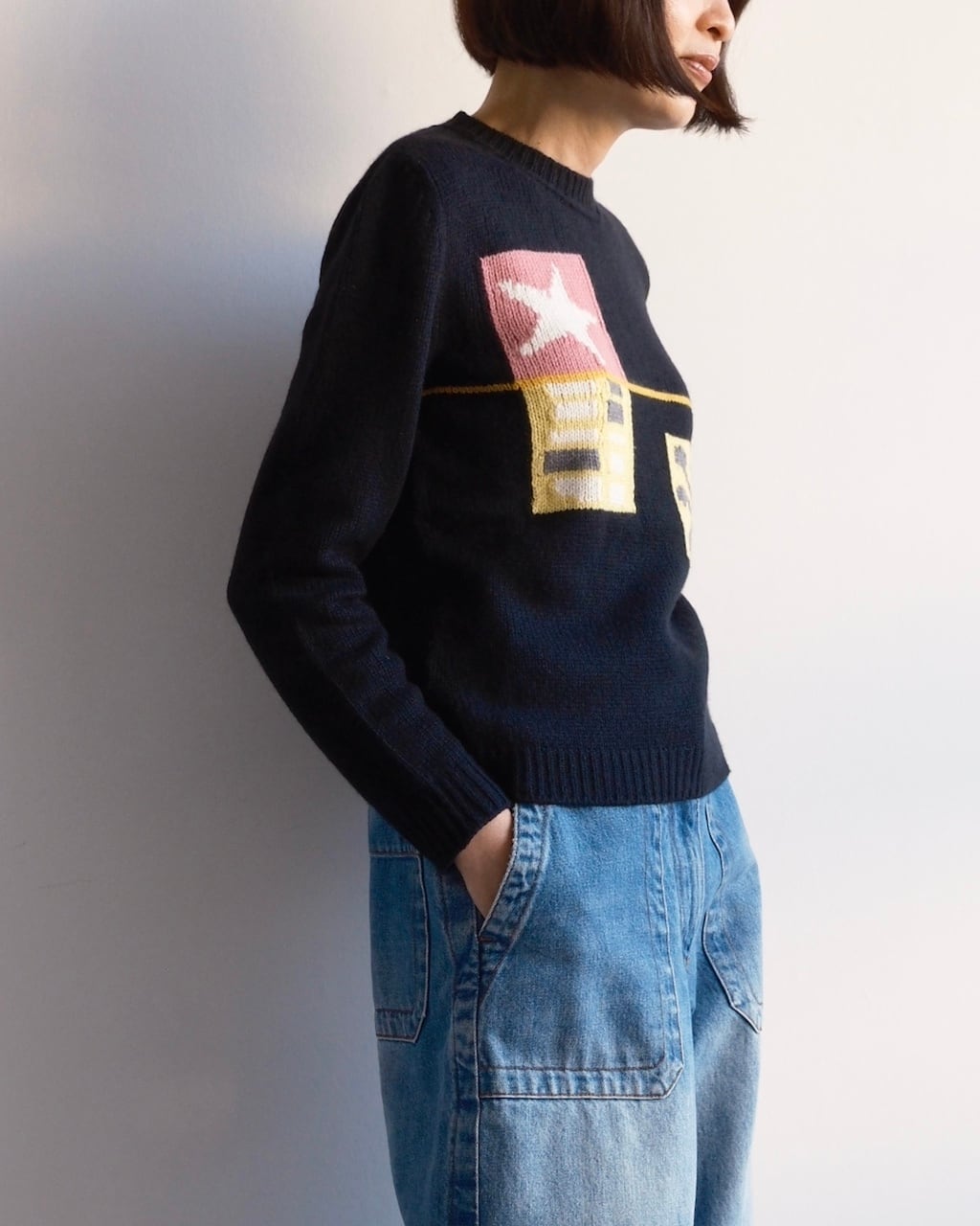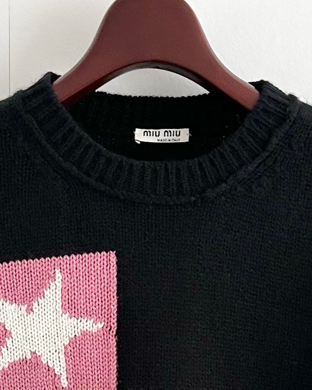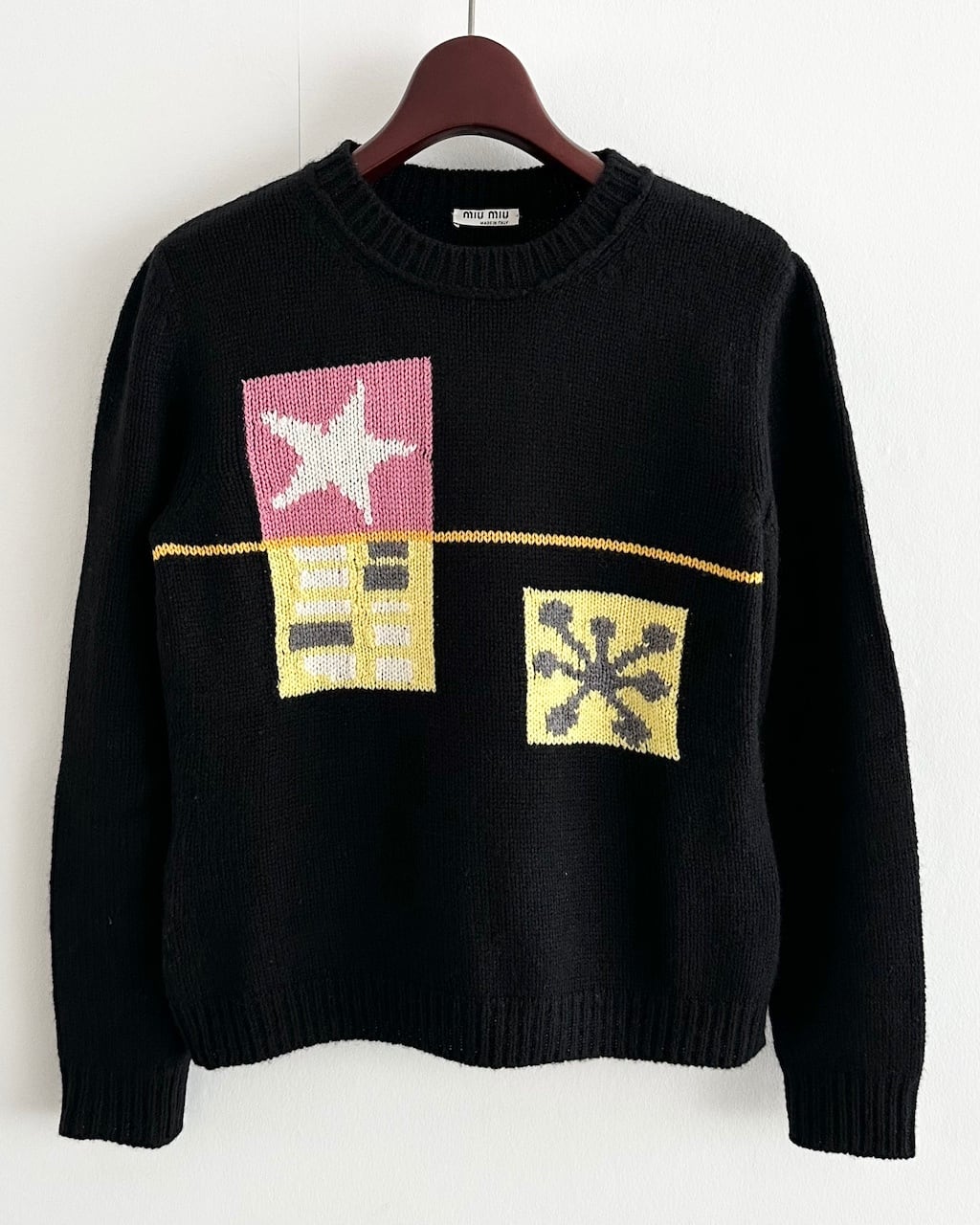 MIUMIUらしい遊び心がたっぷりと詰まったカシミヤ100%のインターシャニット。