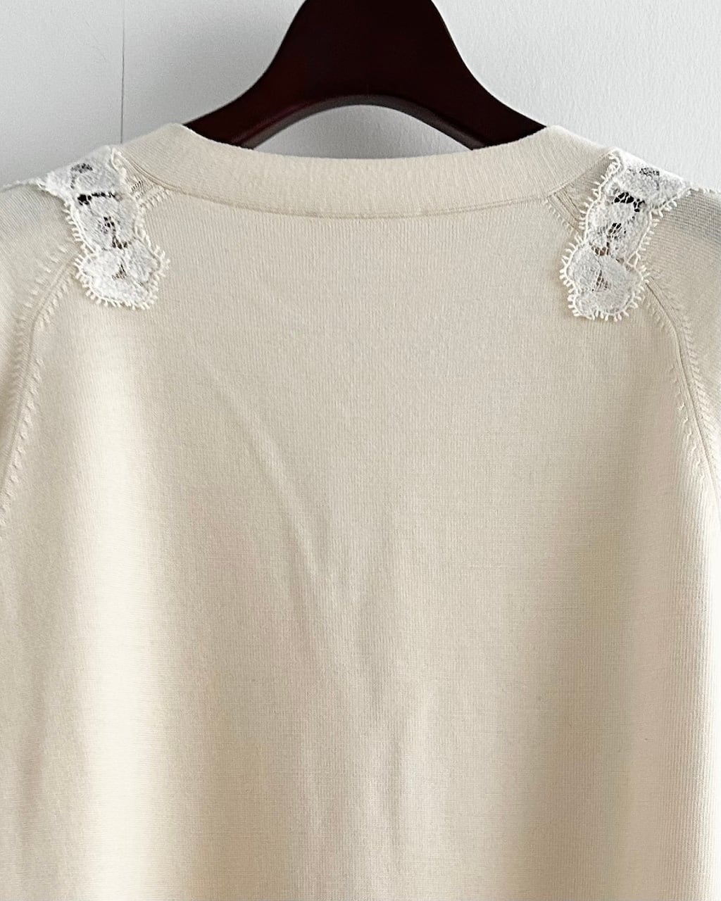 Chloé の繊細なレースディテールが印象的なニットカーディガン。