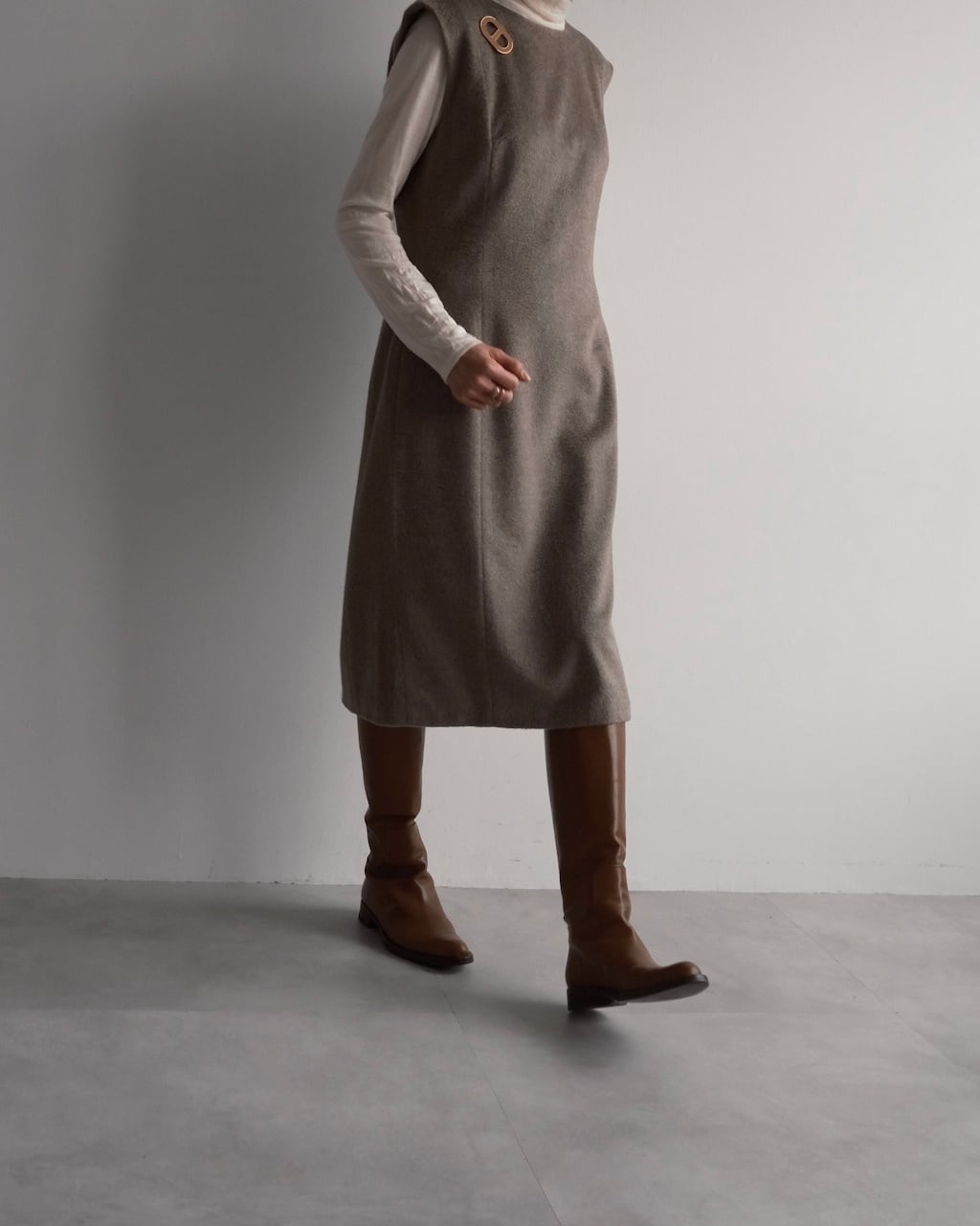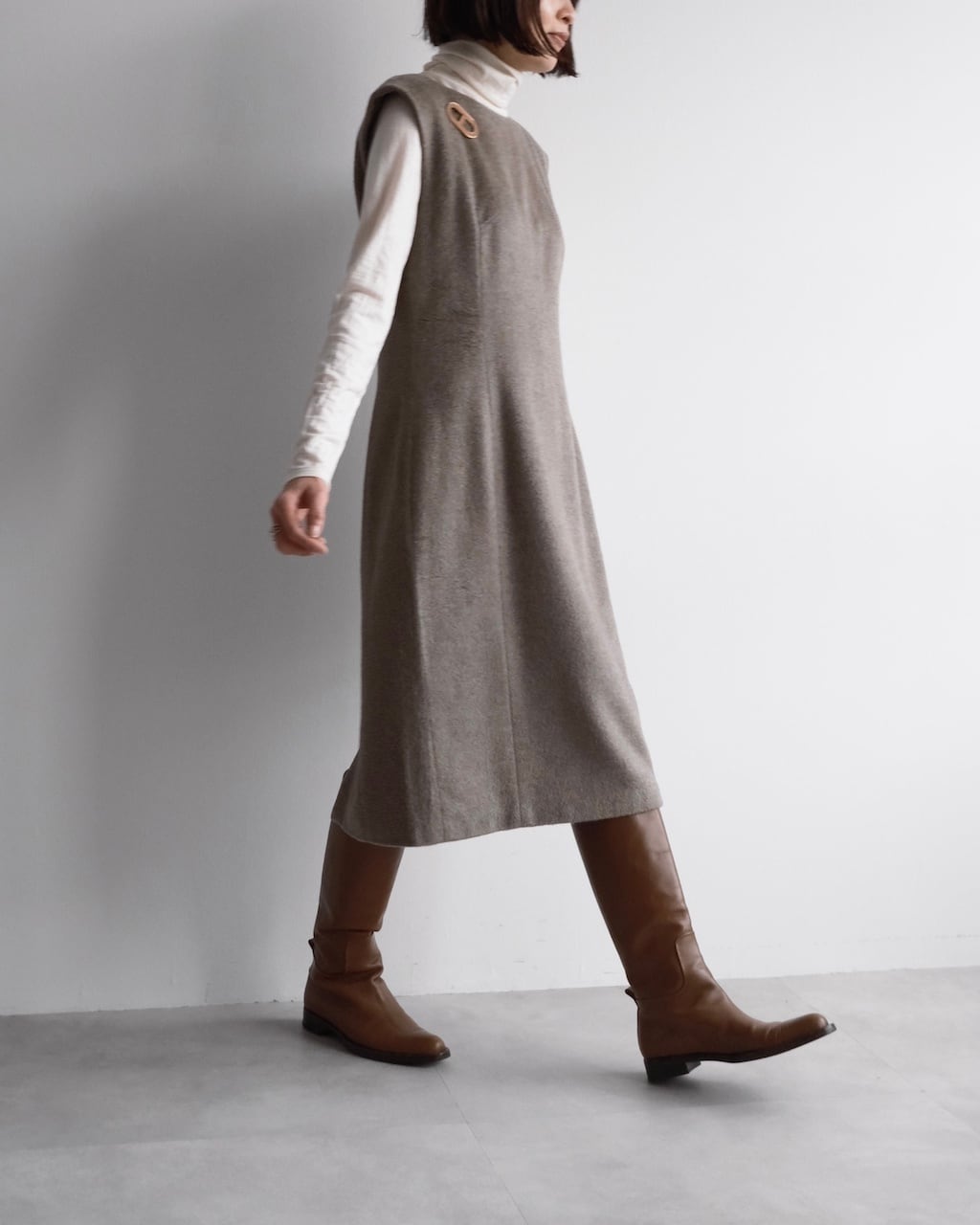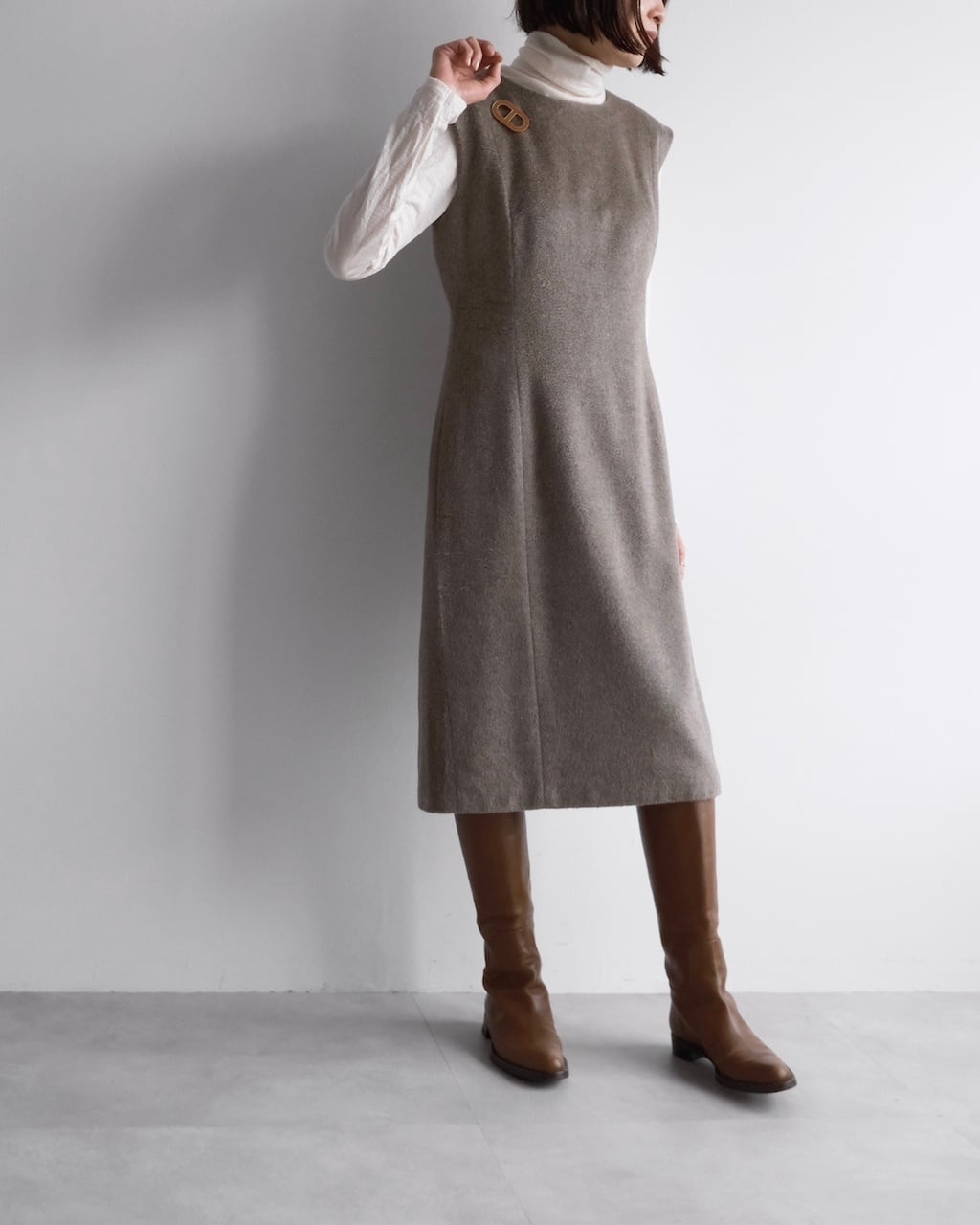 ニュアンスのあるグレージュカラーが美しく、装いに上品な奥行きをもたらすChloéのスリーブレスドレス。