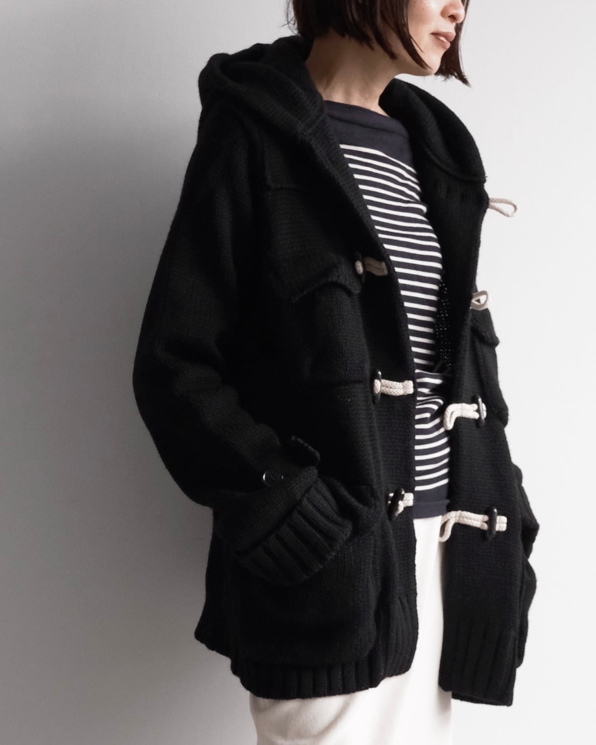 ニット素材で着やすく、コーディネートに使いやすく、日常の装いの中で取り入れやすい一着です。