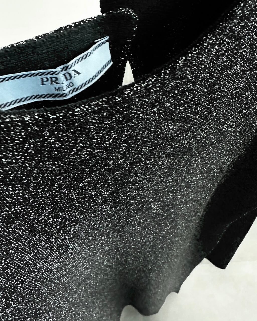 繊細なメタリック糸を織り交ぜた、PRADAらしい上品で静かな存在感を放つニットドレス。