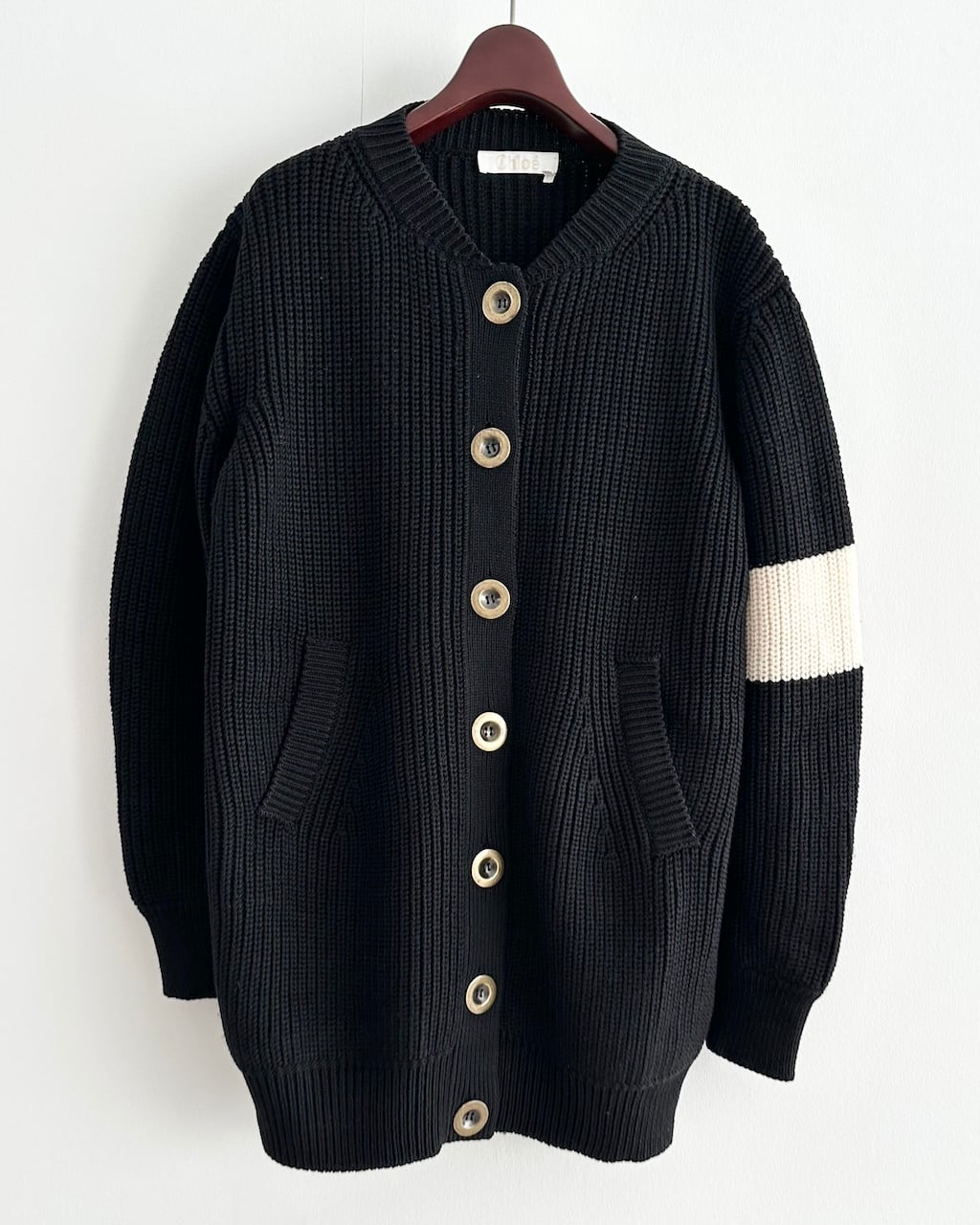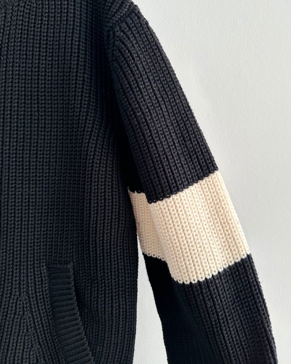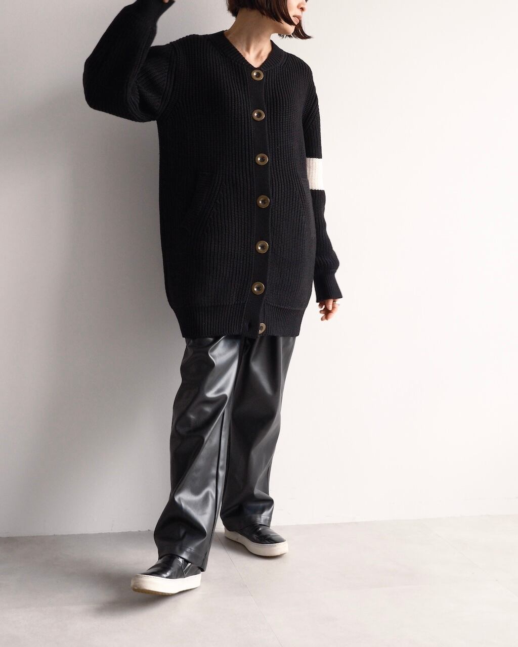 スポーティな要素とニット素材がバランスよく融合した一品です。