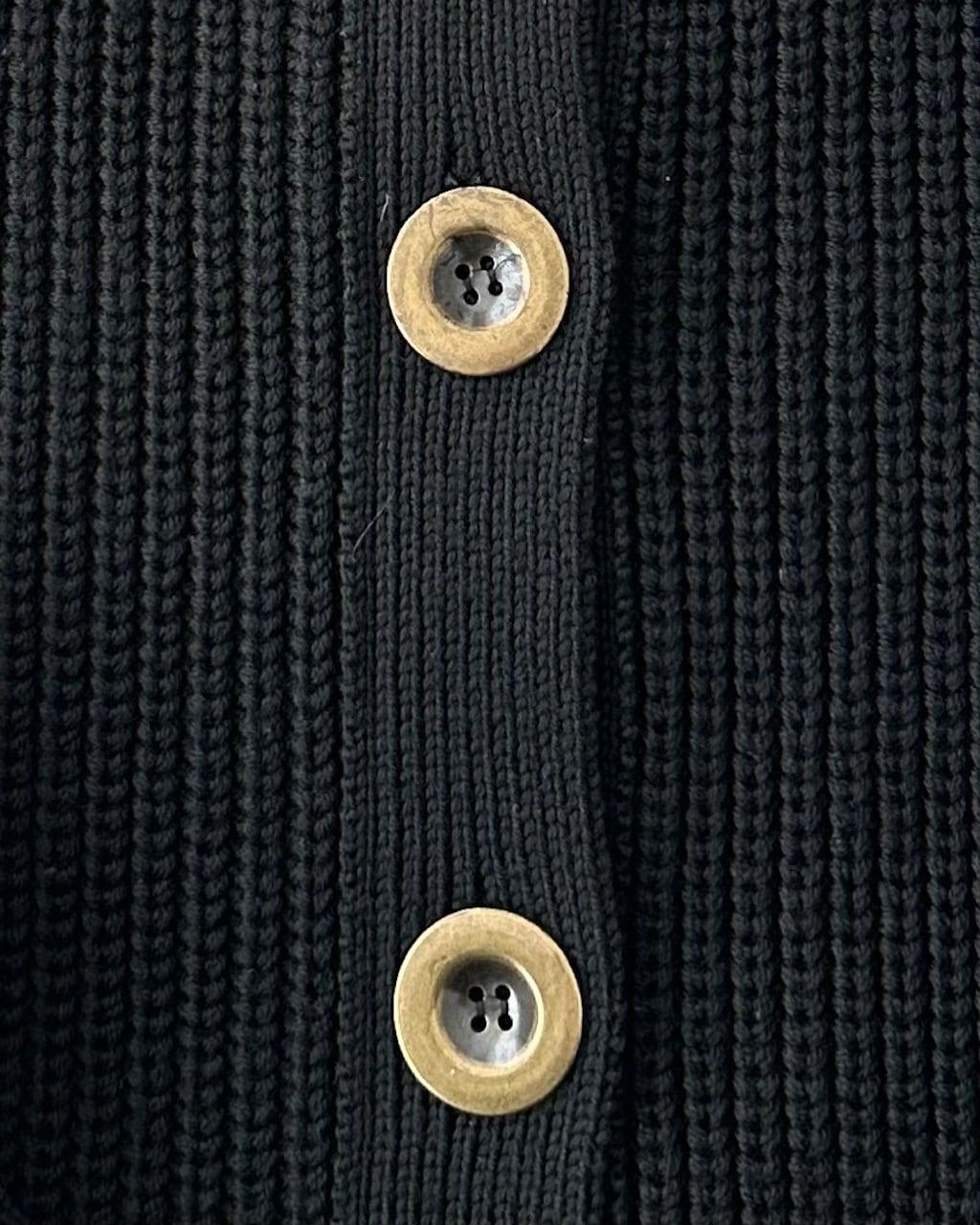フロントには存在感のあるアンティークゴールドカラーの大きなボタンを採用し、クラシカルな表情を添えています。