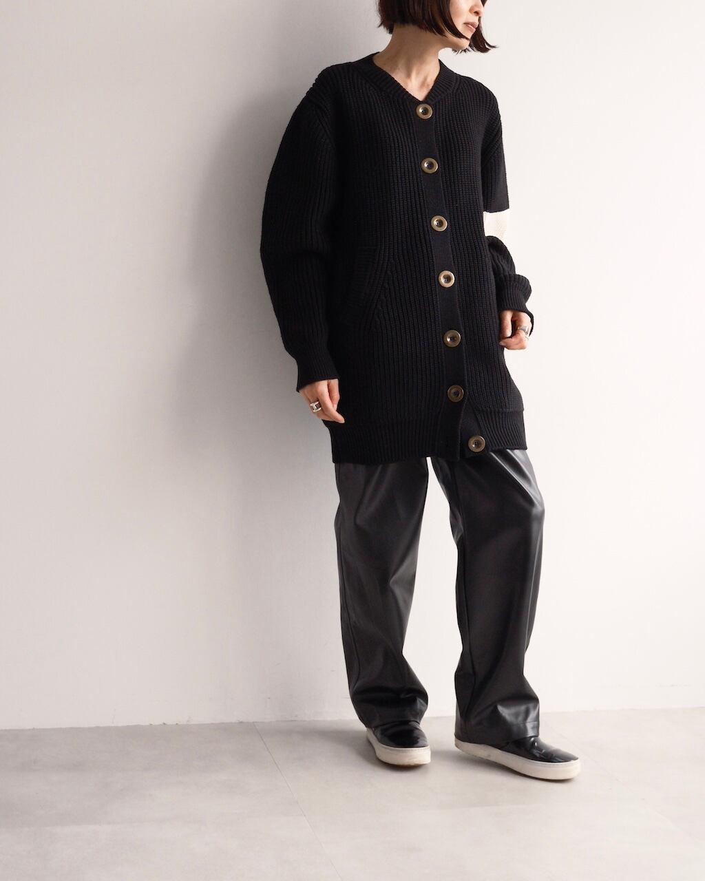襟元はスタジャンを思わせるデザインとなっており、ほどよくカジュアルさをプラス。