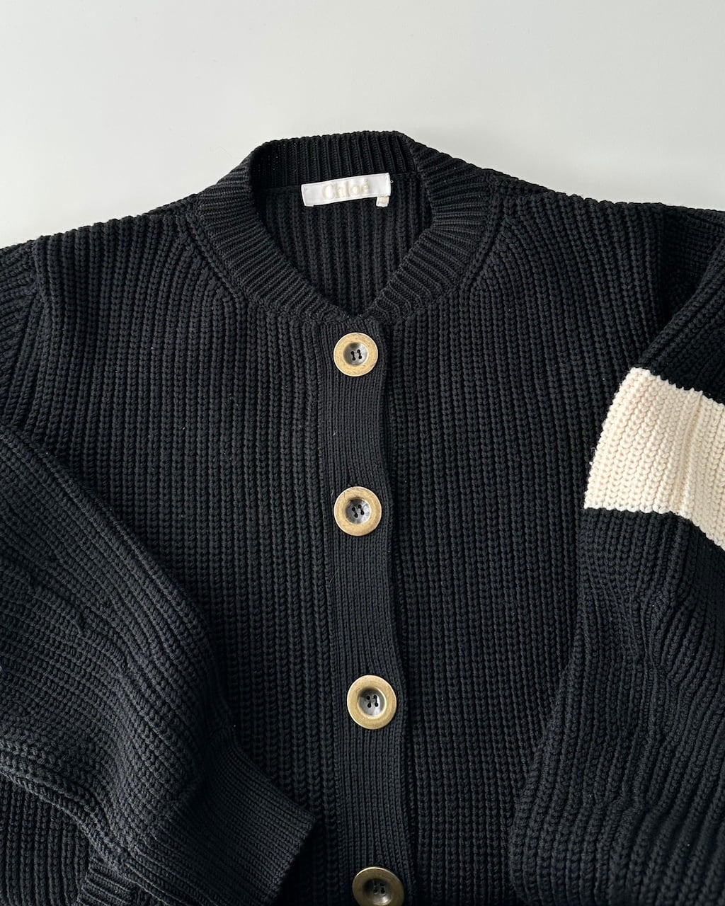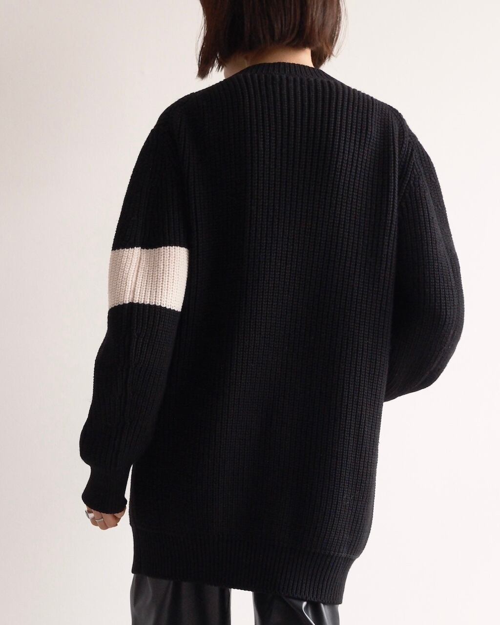 ブラックのボディに袖に配されたホワイトのラインがアクセントとして映え、視線を引きつけるデザインに。