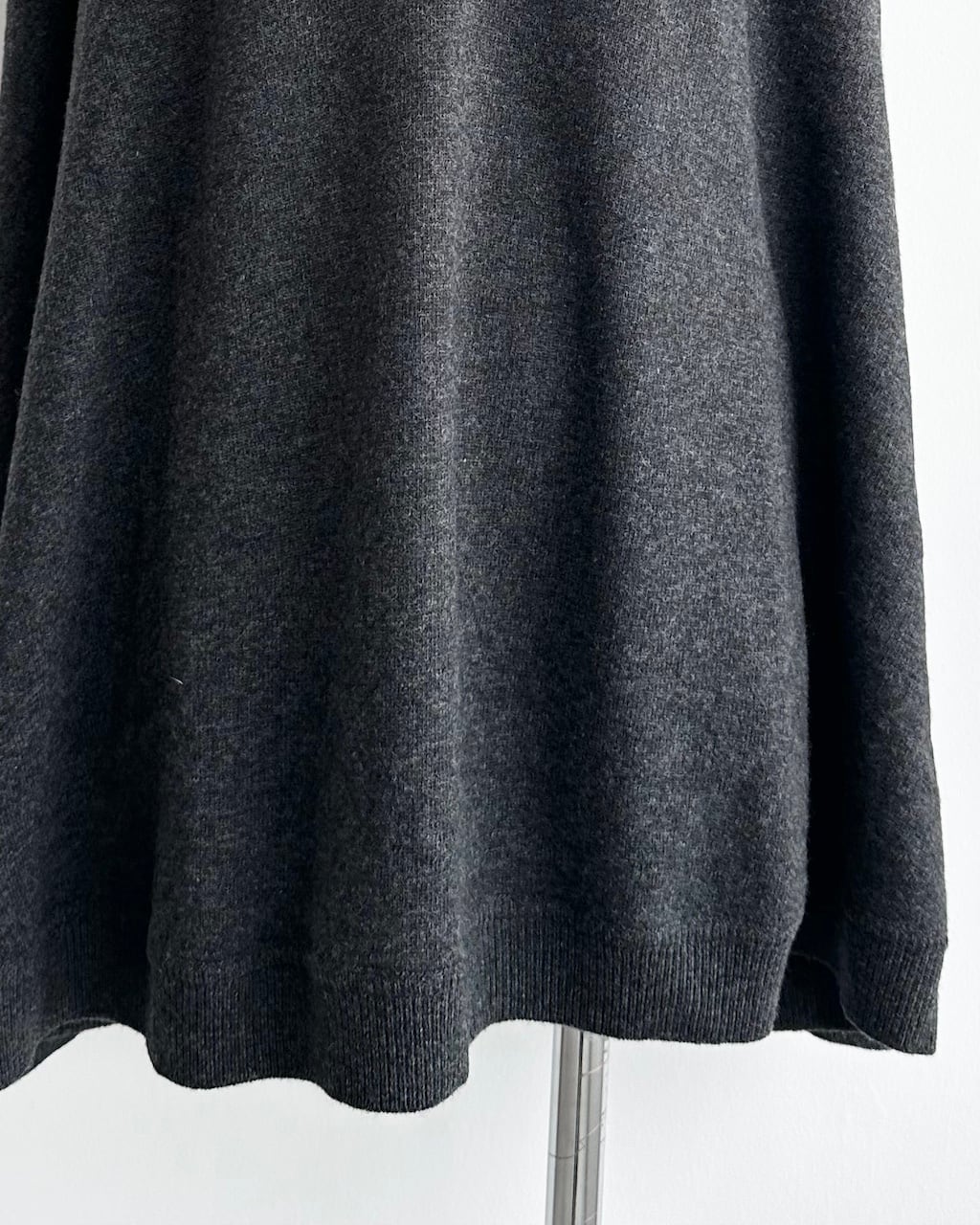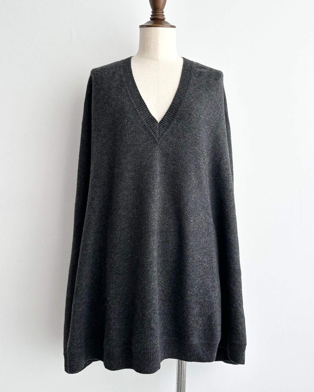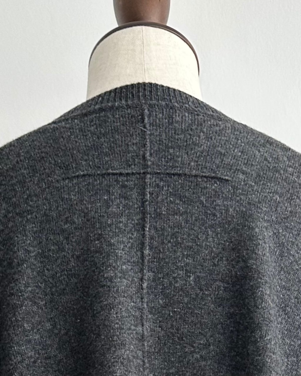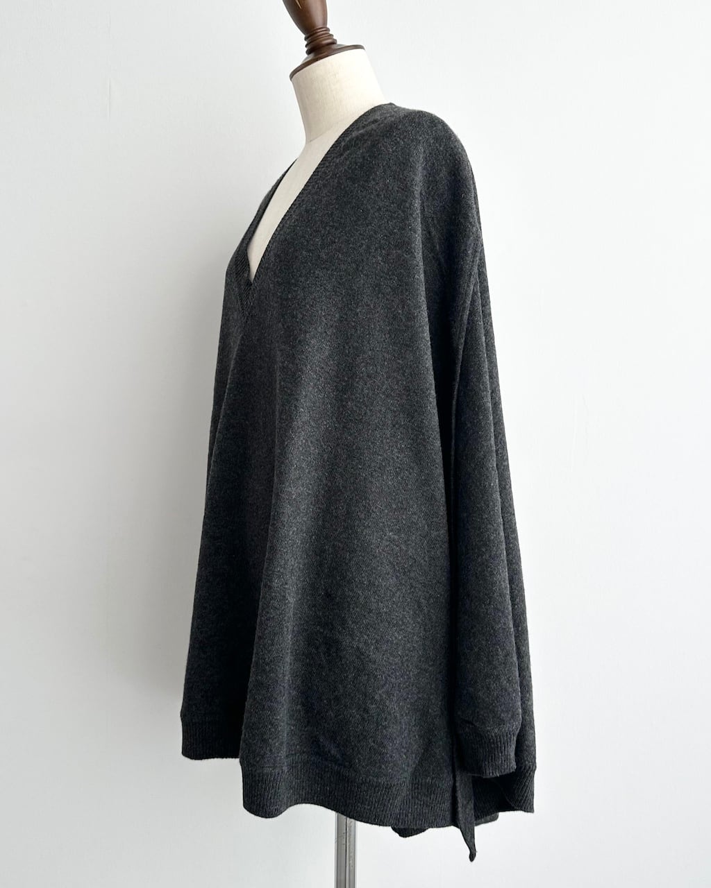 ネックラインは浅すぎないVラインで、ポンチョ特有の分量感の中にもすっきりとしたバランスに。