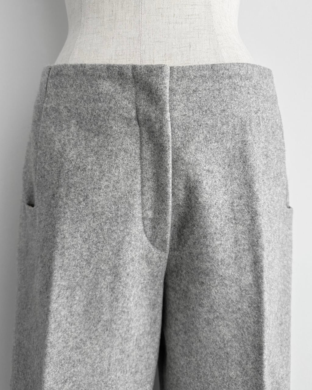 ややハリのある生地は、ウールの安定感にアンゴラ特有の柔らかさが加わり、軽やかで温もりのある穿き心地に。