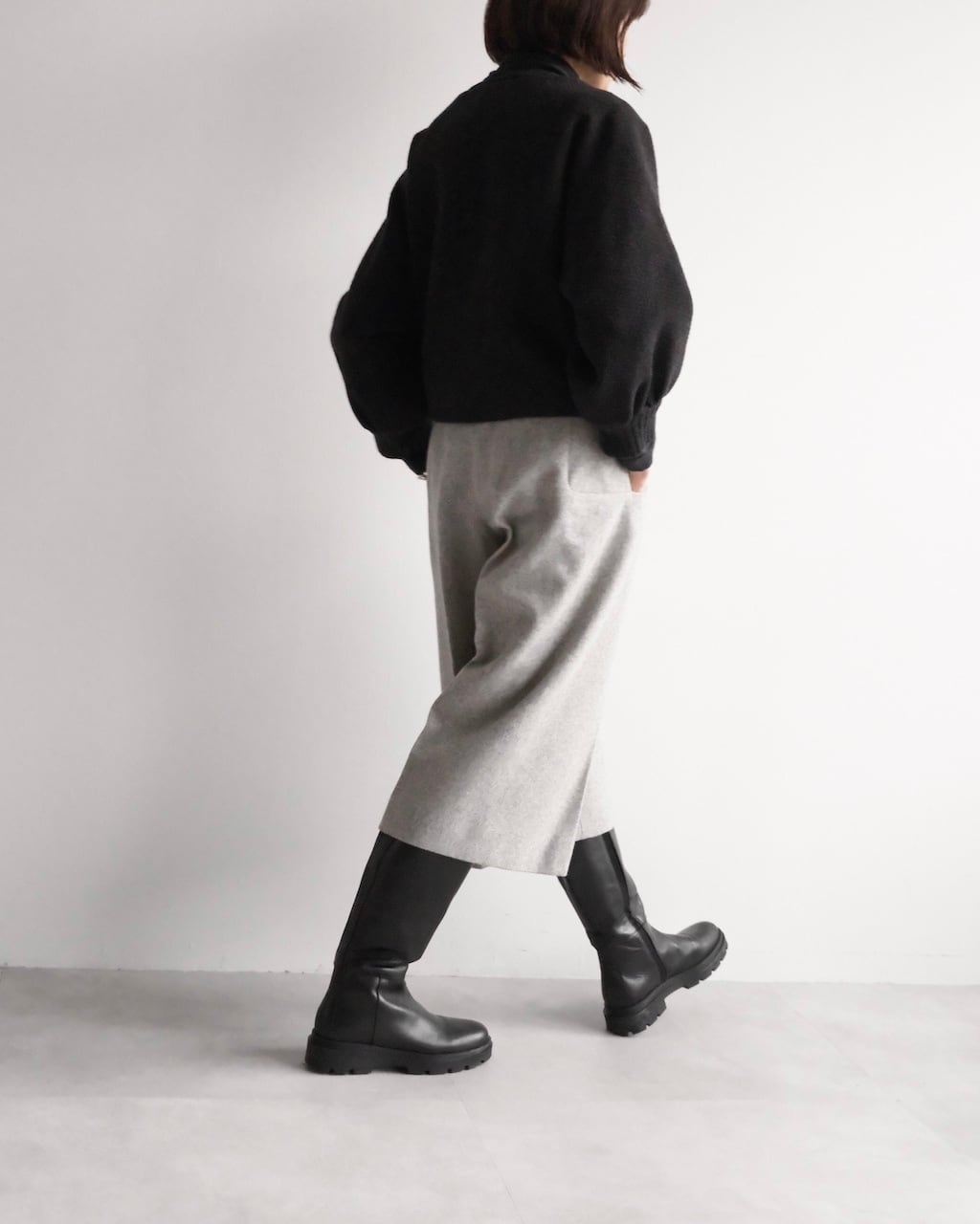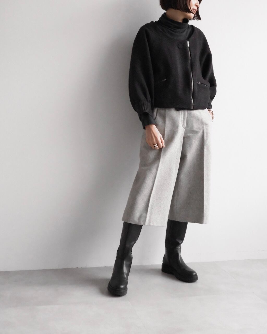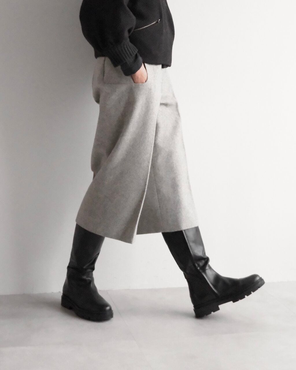 ショートブーツやロングブーツと好相性で、秋冬の装いをすっきりと仕上げてくれます。