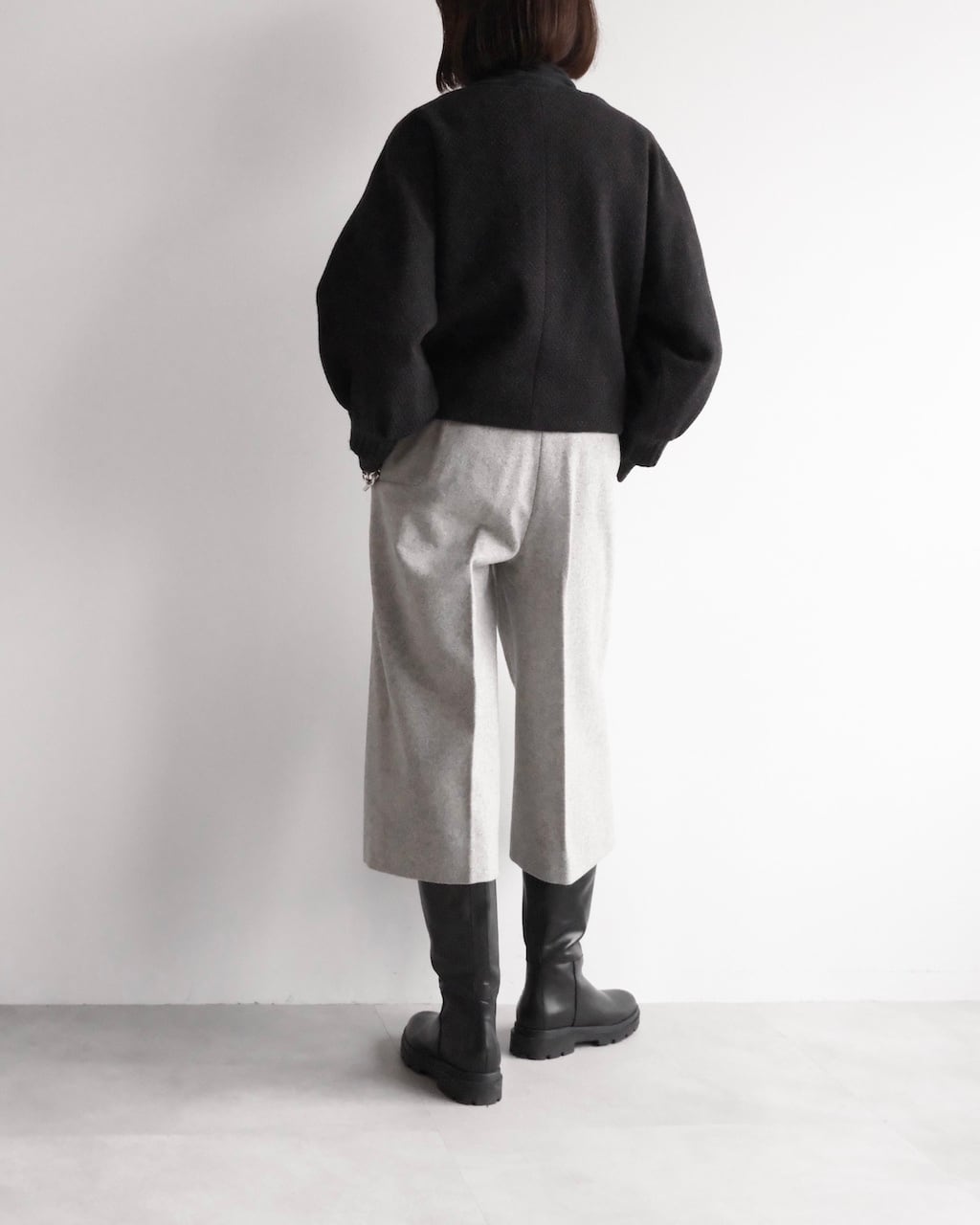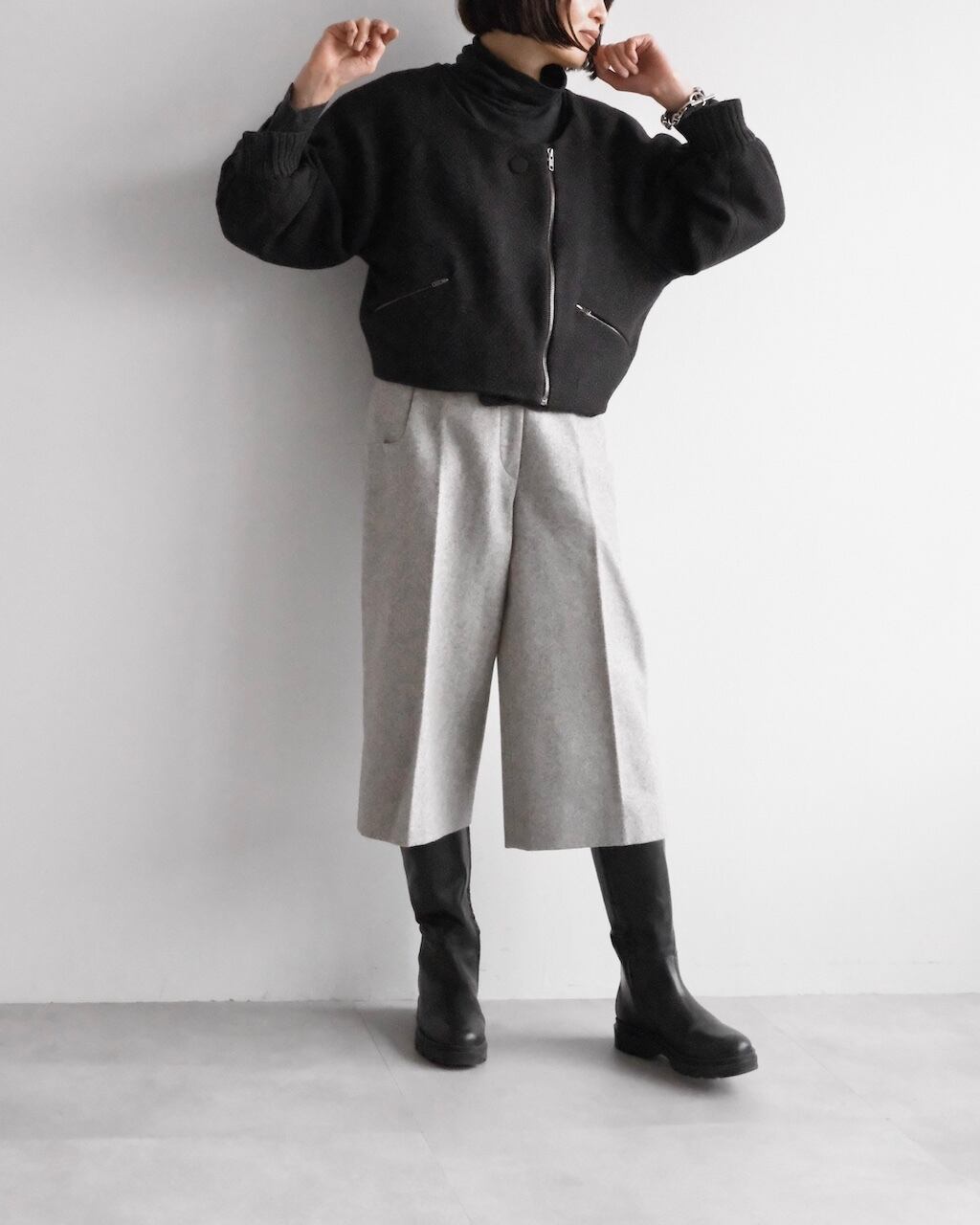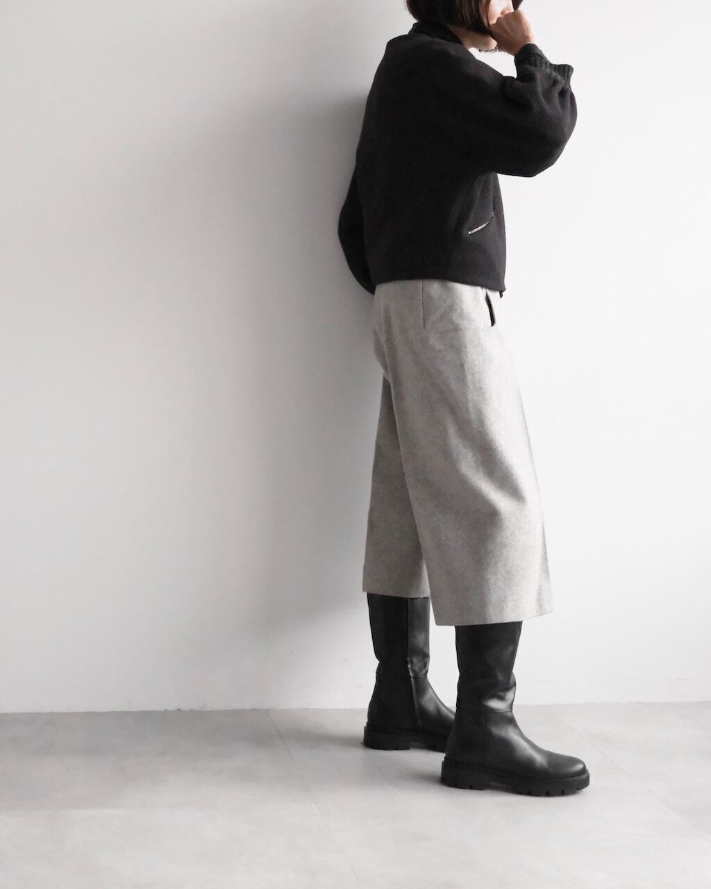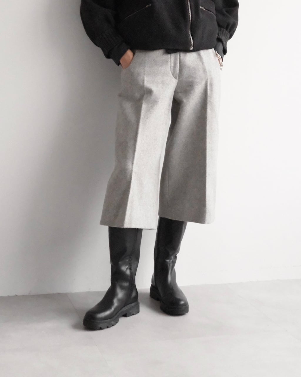 ショートブーツやロングブーツと好相性で、秋冬の装いをすっきりと仕上げてくれます。
