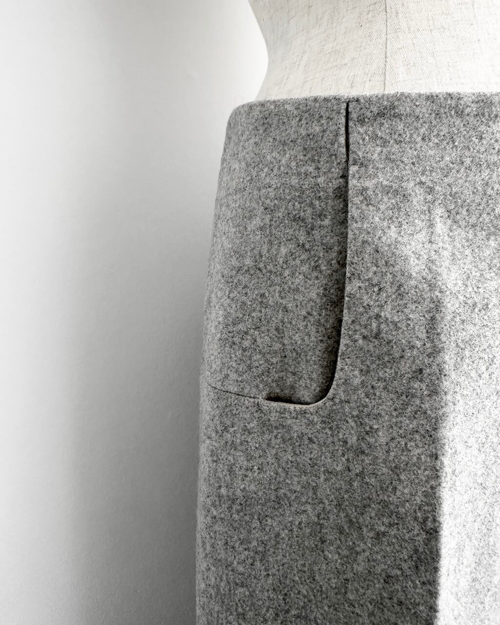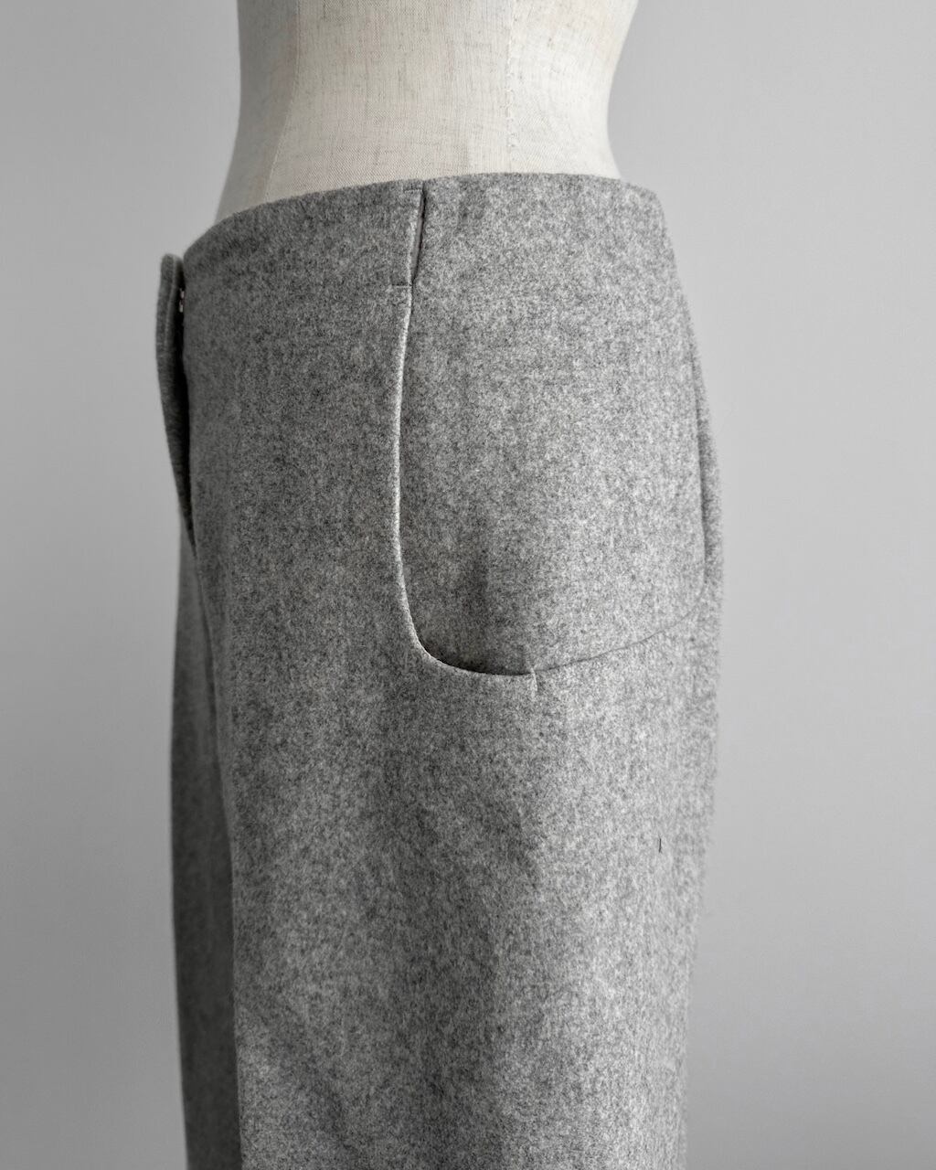 スクエア型のポケットや、無駄を削ぎ落としたウエストまわりの仕様など、実用性と美しさを両立した仕上がりに。