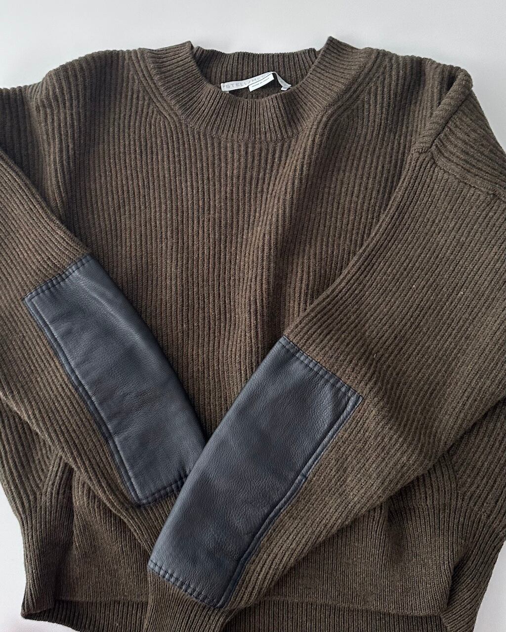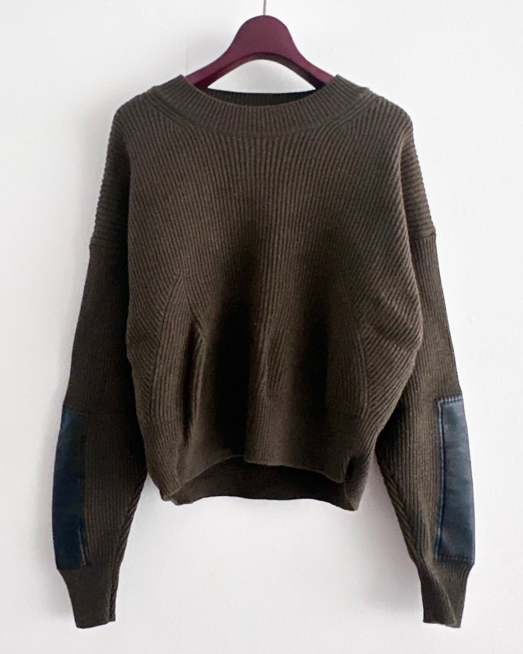 エルボーパッチが印象的なSTELLA McCARTNEYのリブニットトップ。