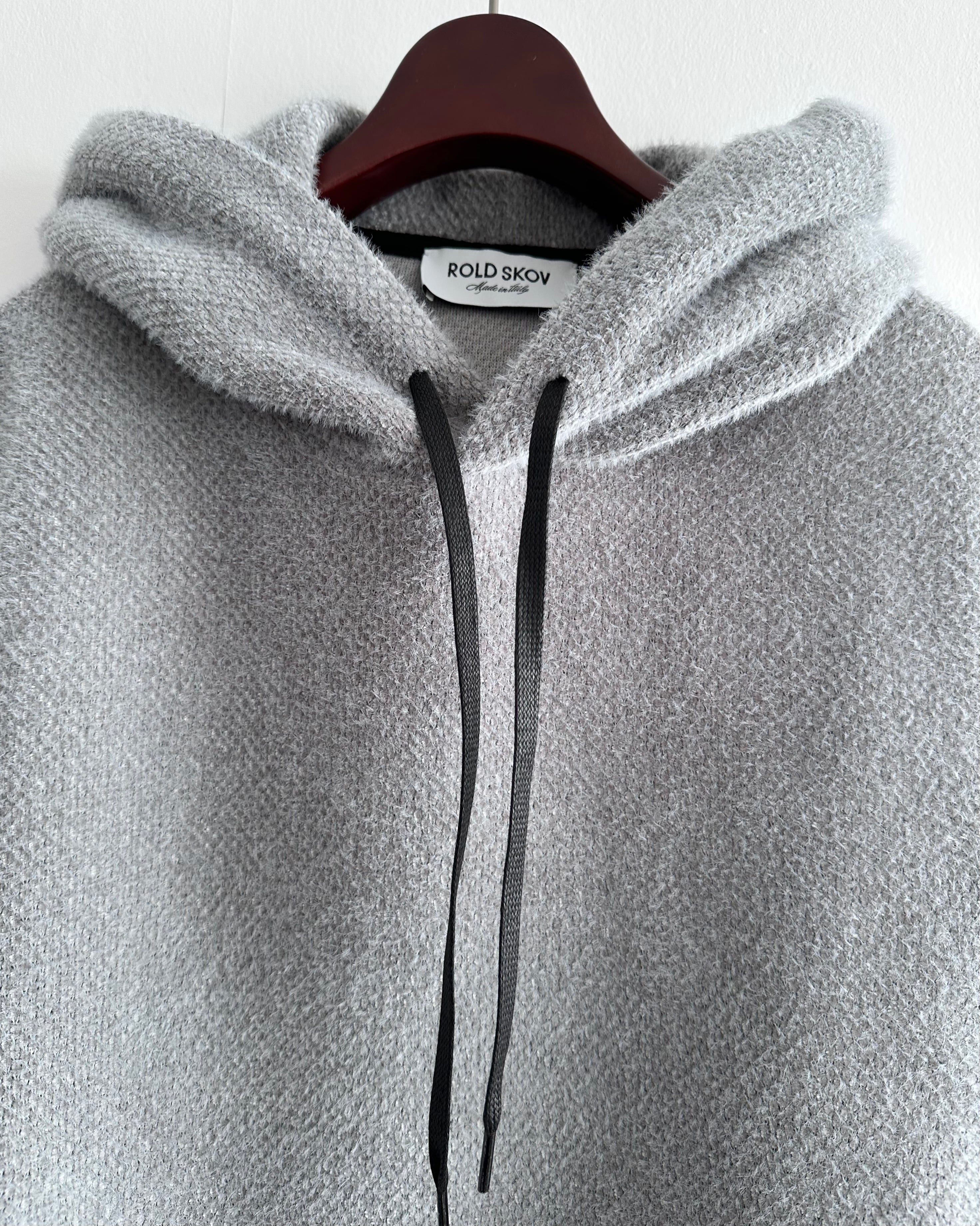 表情のあるニット素材を用いたROLD SKOVのフーディトップ。