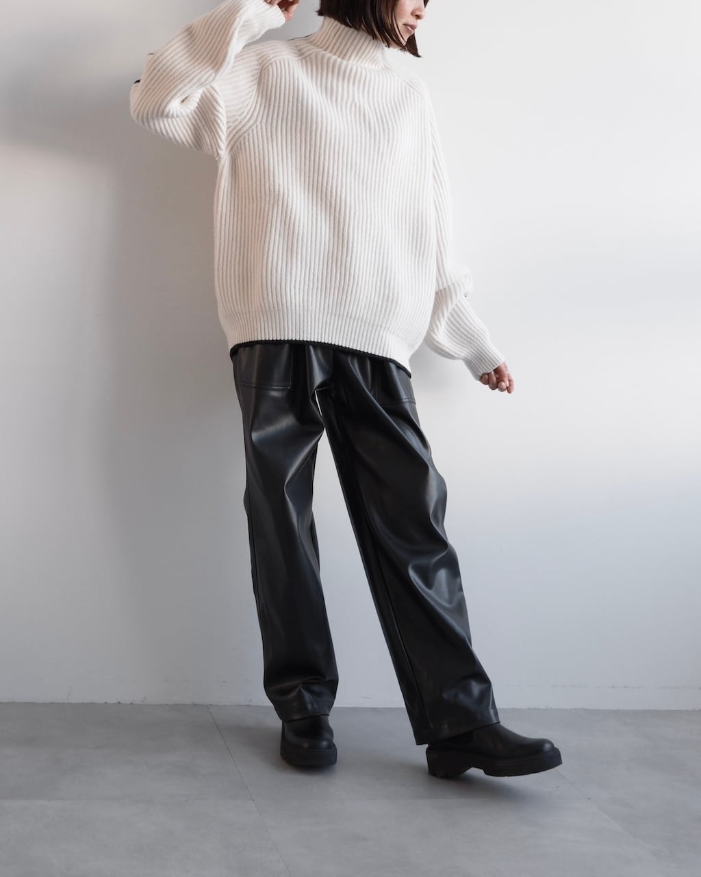 しっかりとした編み地ながら柔らかさもあり、秋冬の主役として一枚で着用いただけます。