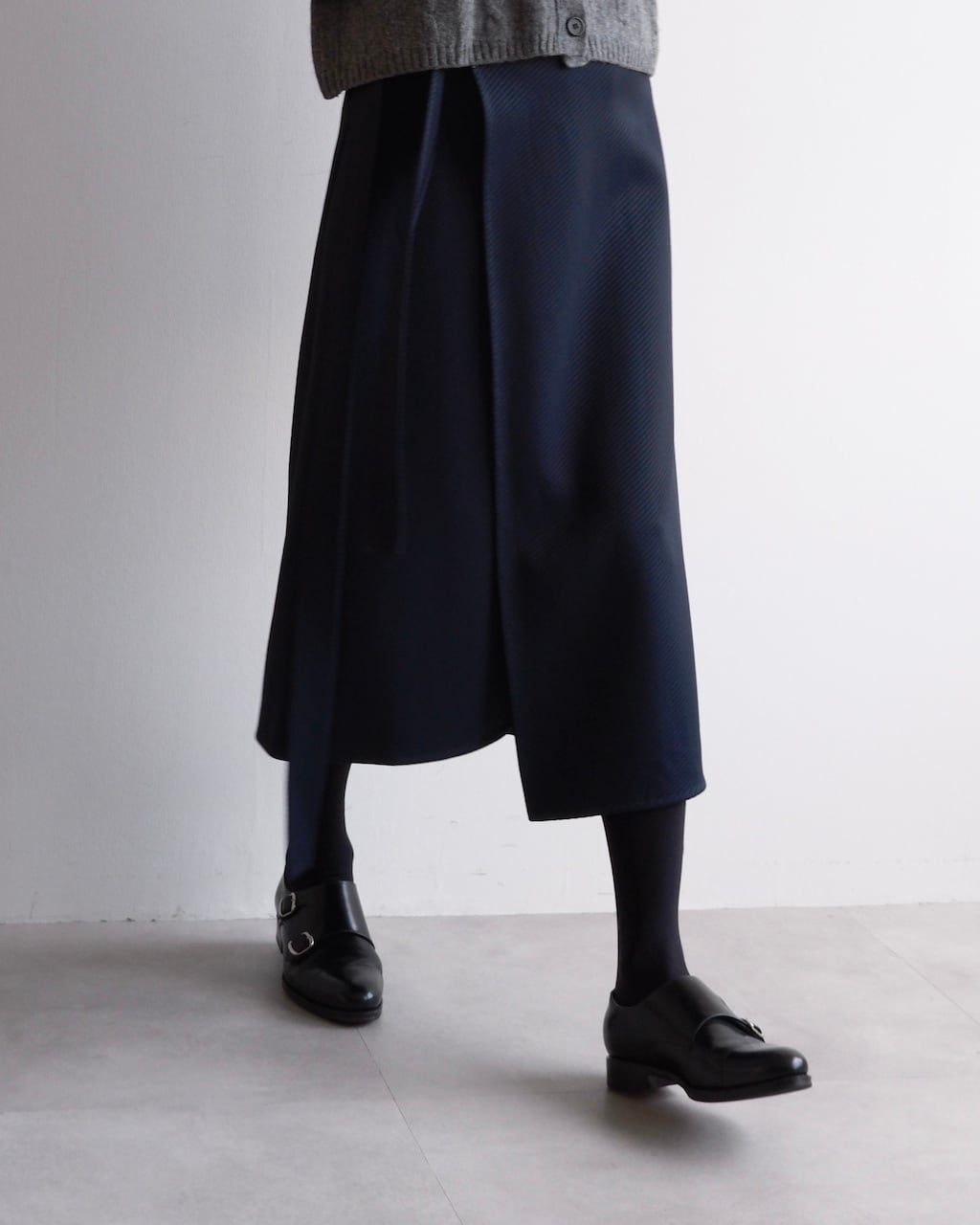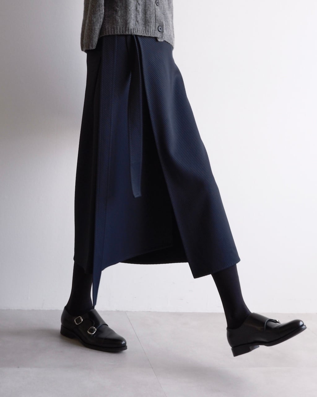 フィービー・ファイロ期のCÉLINEによる上品なネイビーカラーのラップスカート。