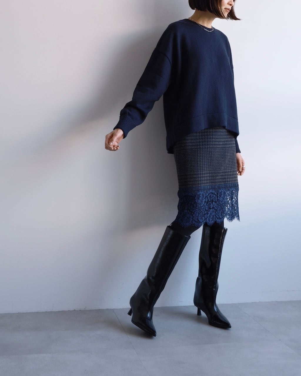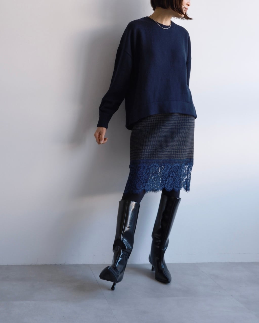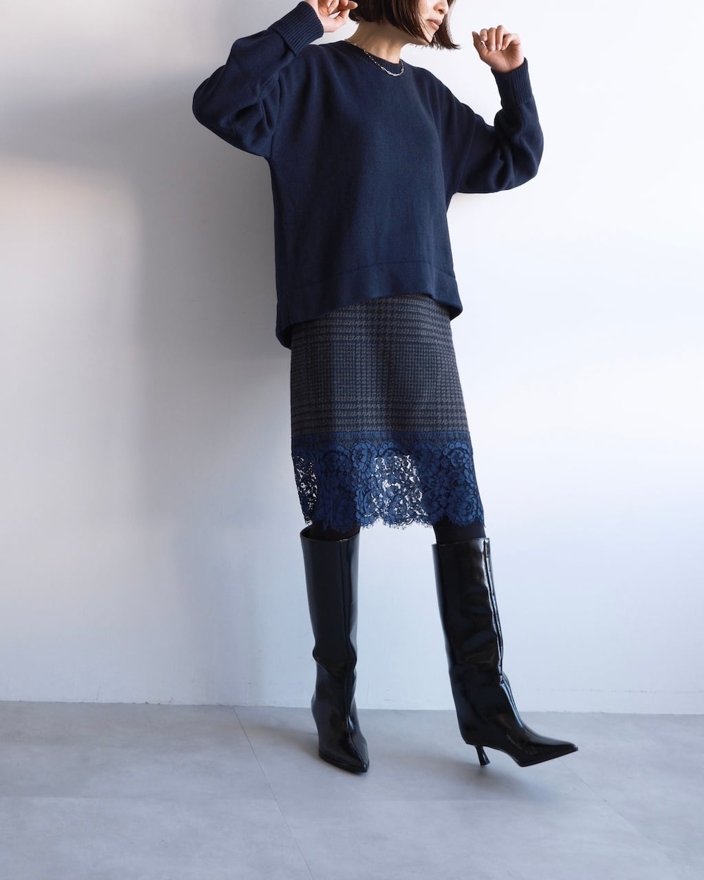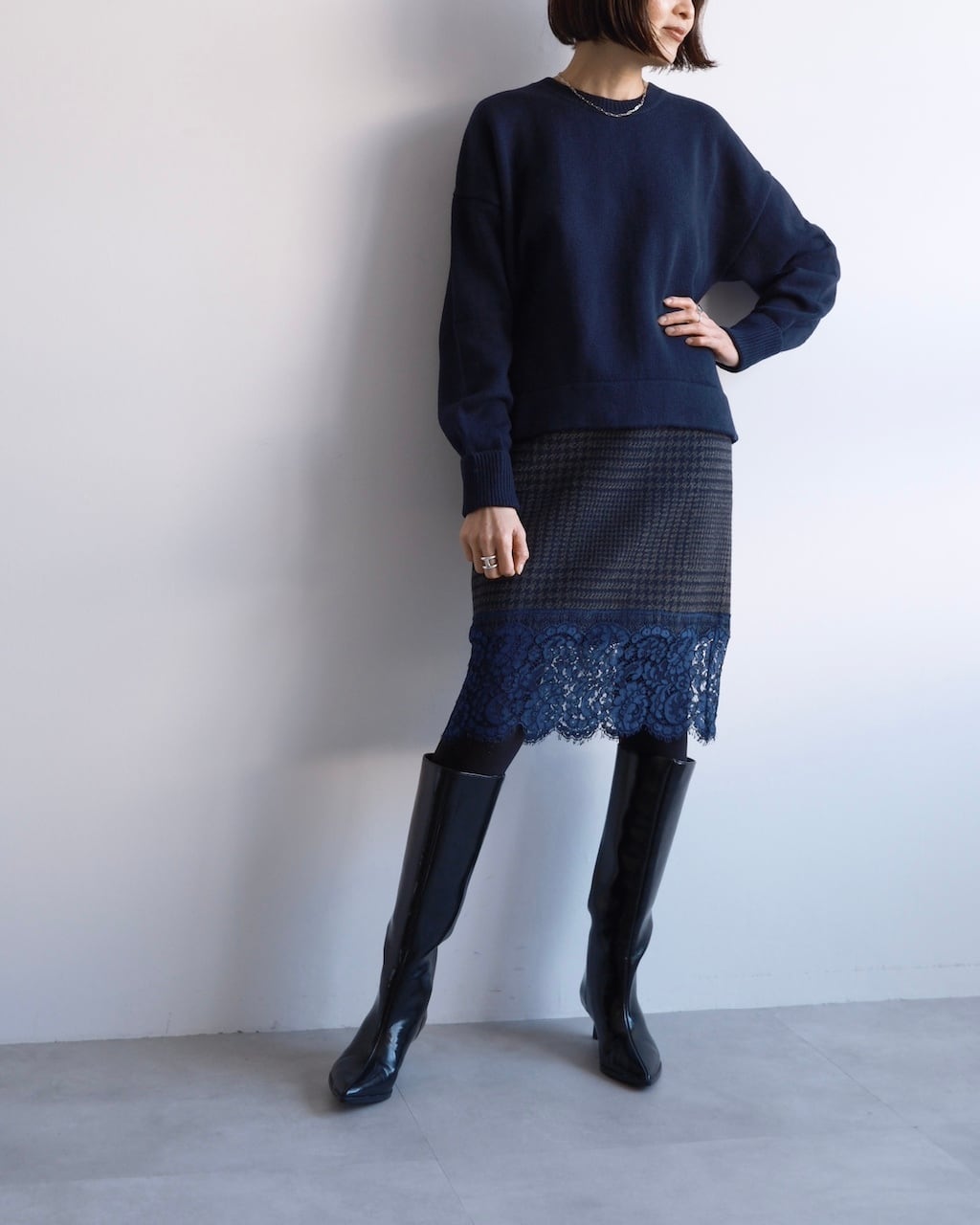 パンツ、スカート問わず合わせやすく、日常の装いに自然と溶け込むニットです。