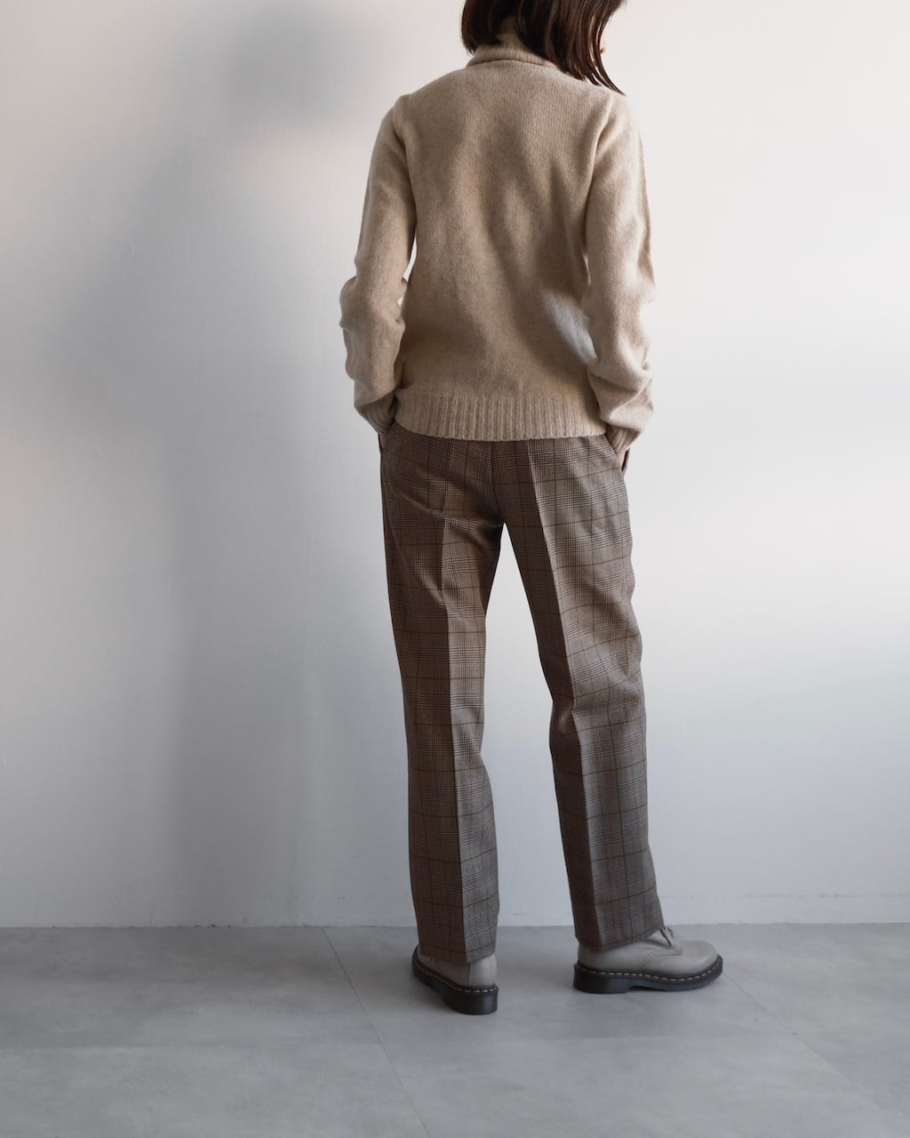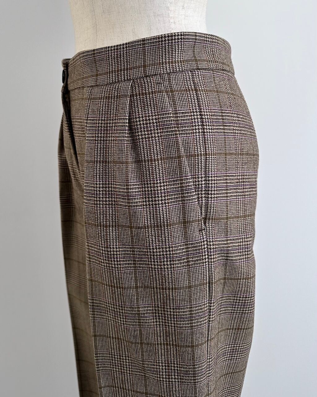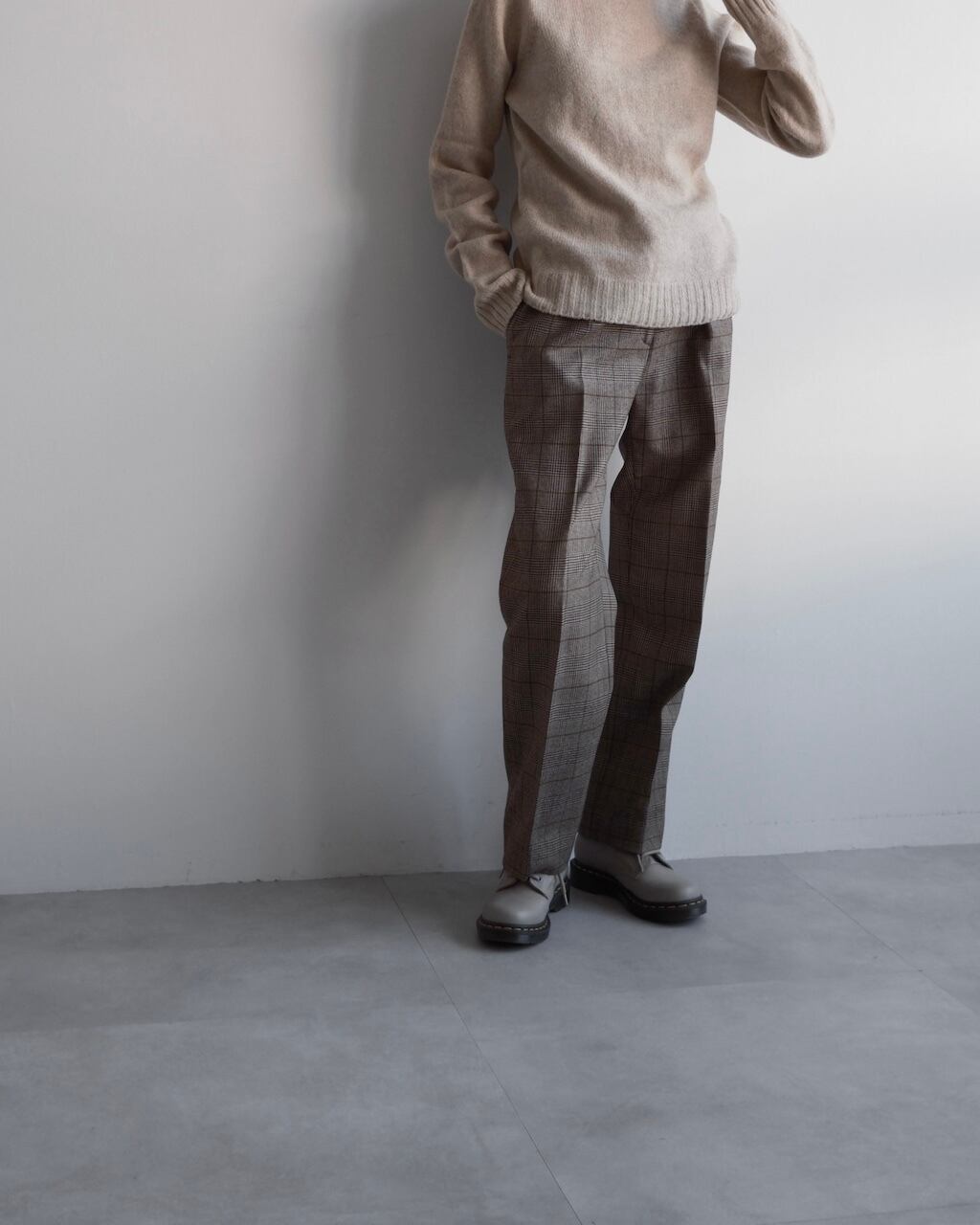 上質なウール素材ならではのしなやかさがあり、チェック柄でありながら大人っぽく落ち着いた佇まいに仕上げてくれます。