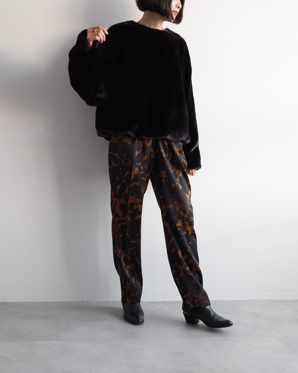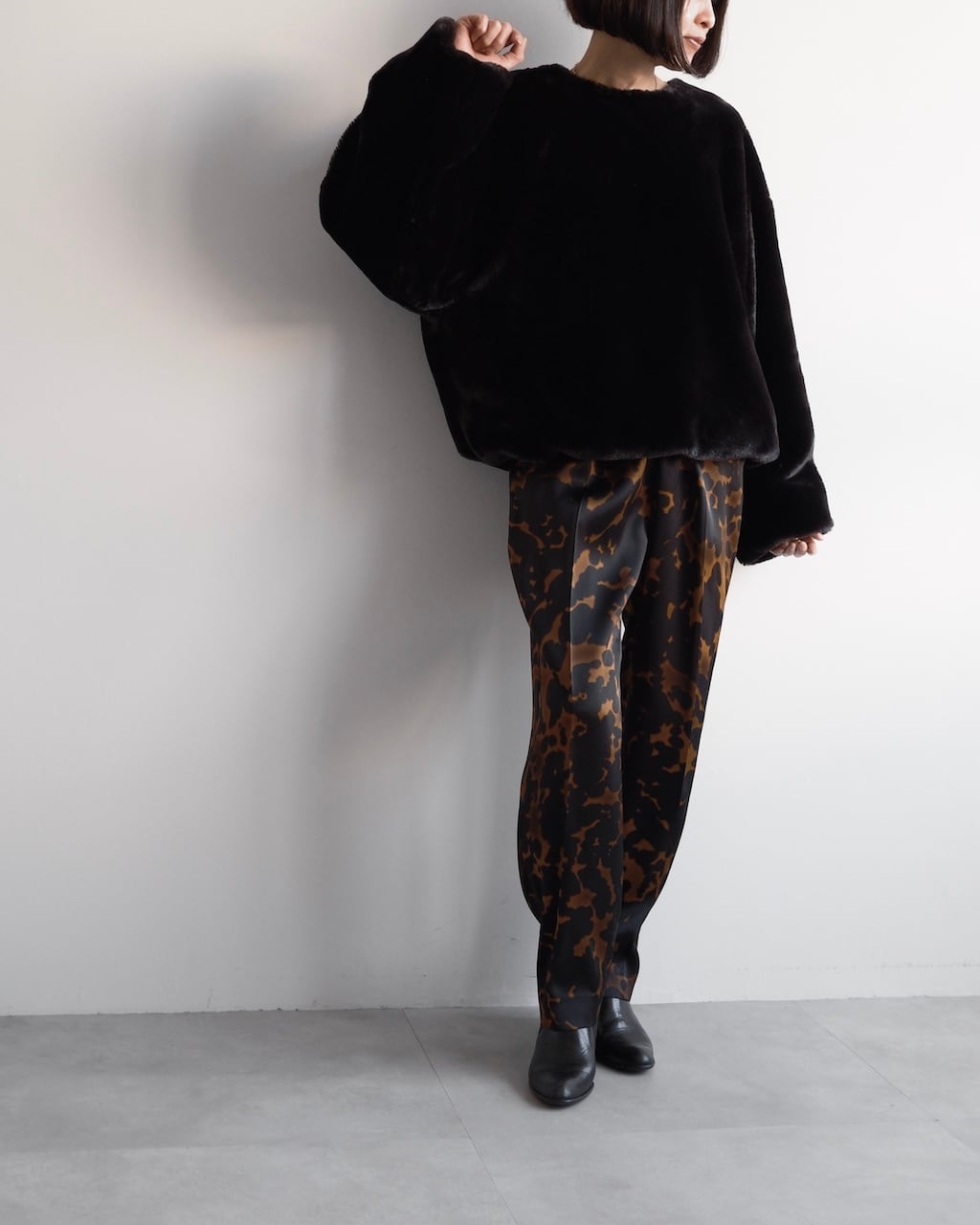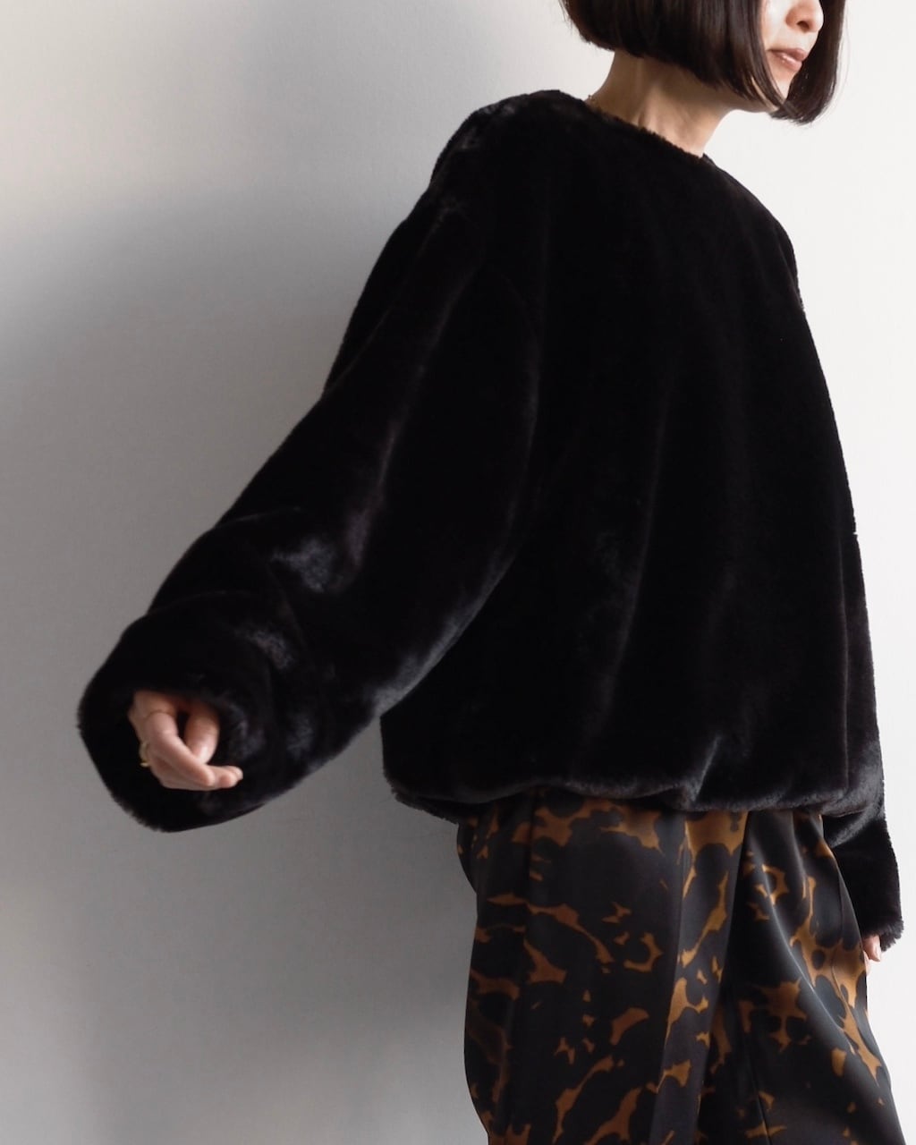 秋冬のスタイリングの中に存在感を添えてくれる、シーズンムードたっぷりの一枚です。