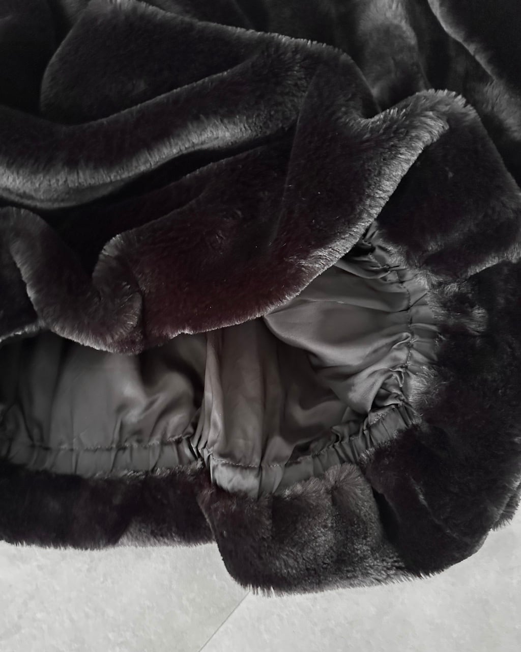 袖口と裾の内側にはゴムが入っており、着用すると自然に丸みを帯び、体を包み込むような立体的なシルエットに。