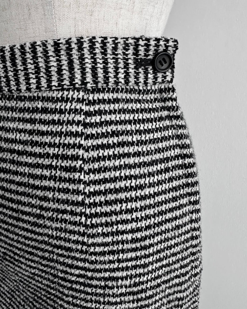 ブラック×ホワイトの細かなハウンドトゥース柄の表情豊かな織り生地を使用。