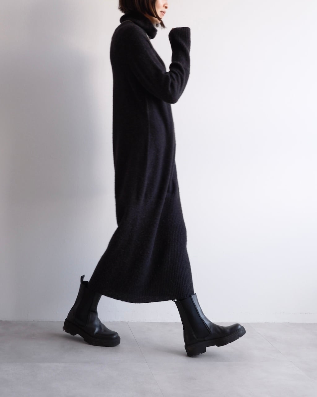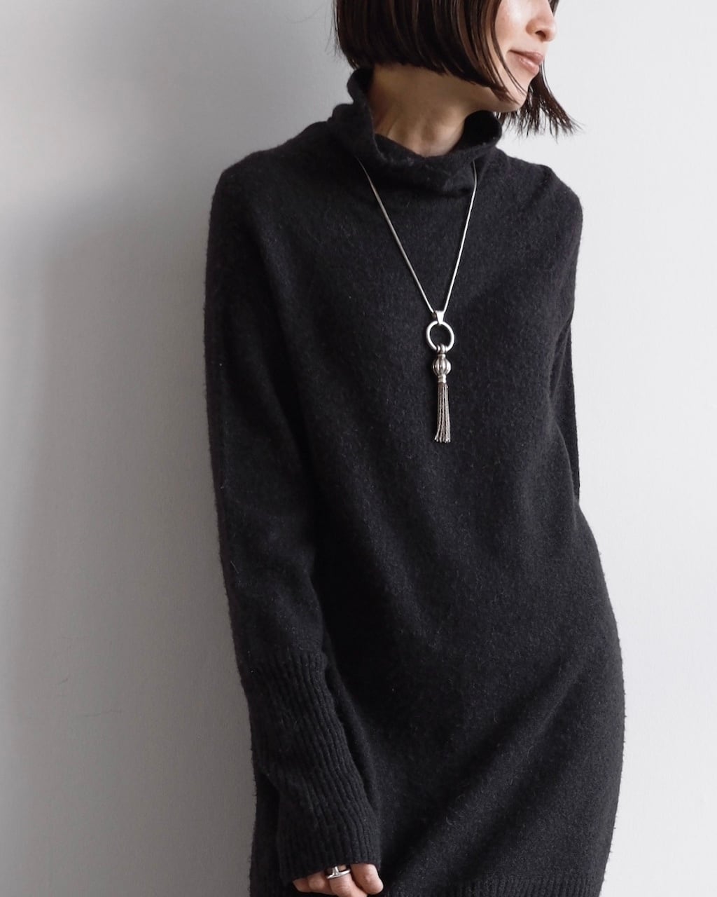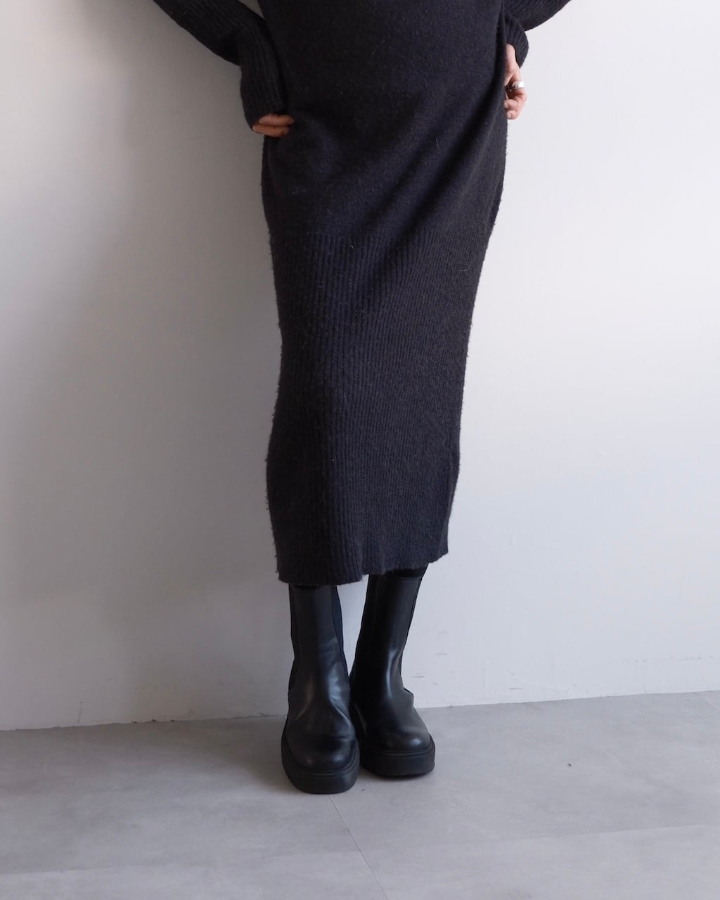 長めの着丈ながら重さを感じにくく、一枚でスタイリングが完成します。