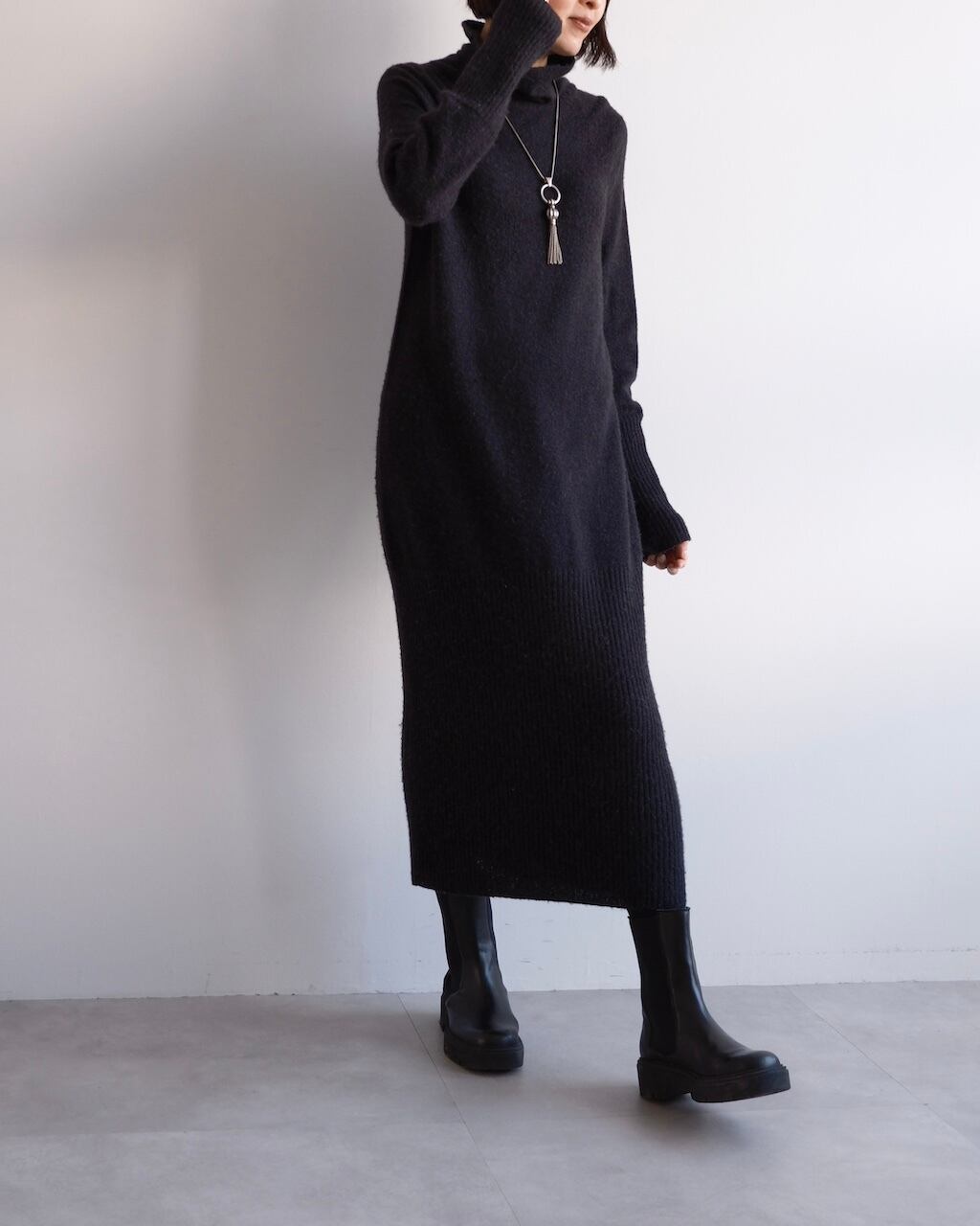 MM6ラインから展開されたアルパカ混素材のニットドレス。